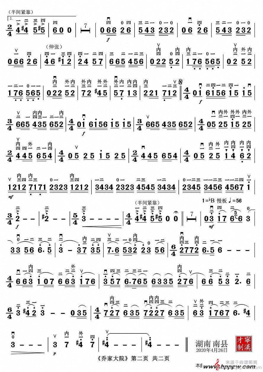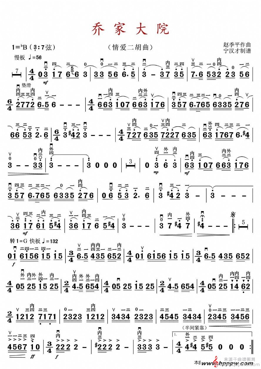 曲谱图网为您提供乔家大院二胡曲谱找谱子,就上曲谱图网。