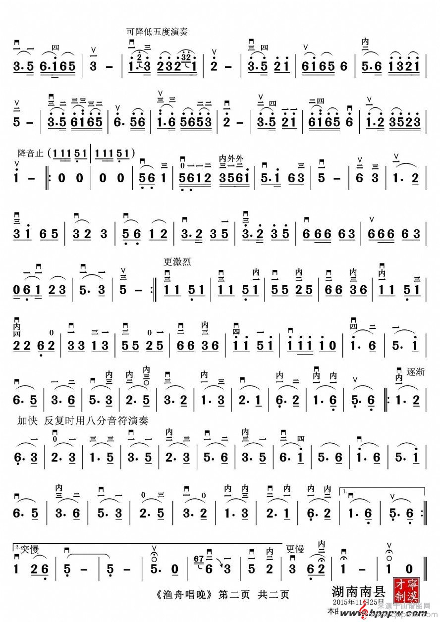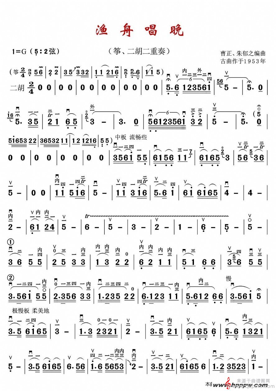 曲谱图网为您提供渔舟唱晚筝、二胡二重奏曲谱找谱子,就上曲谱图网。