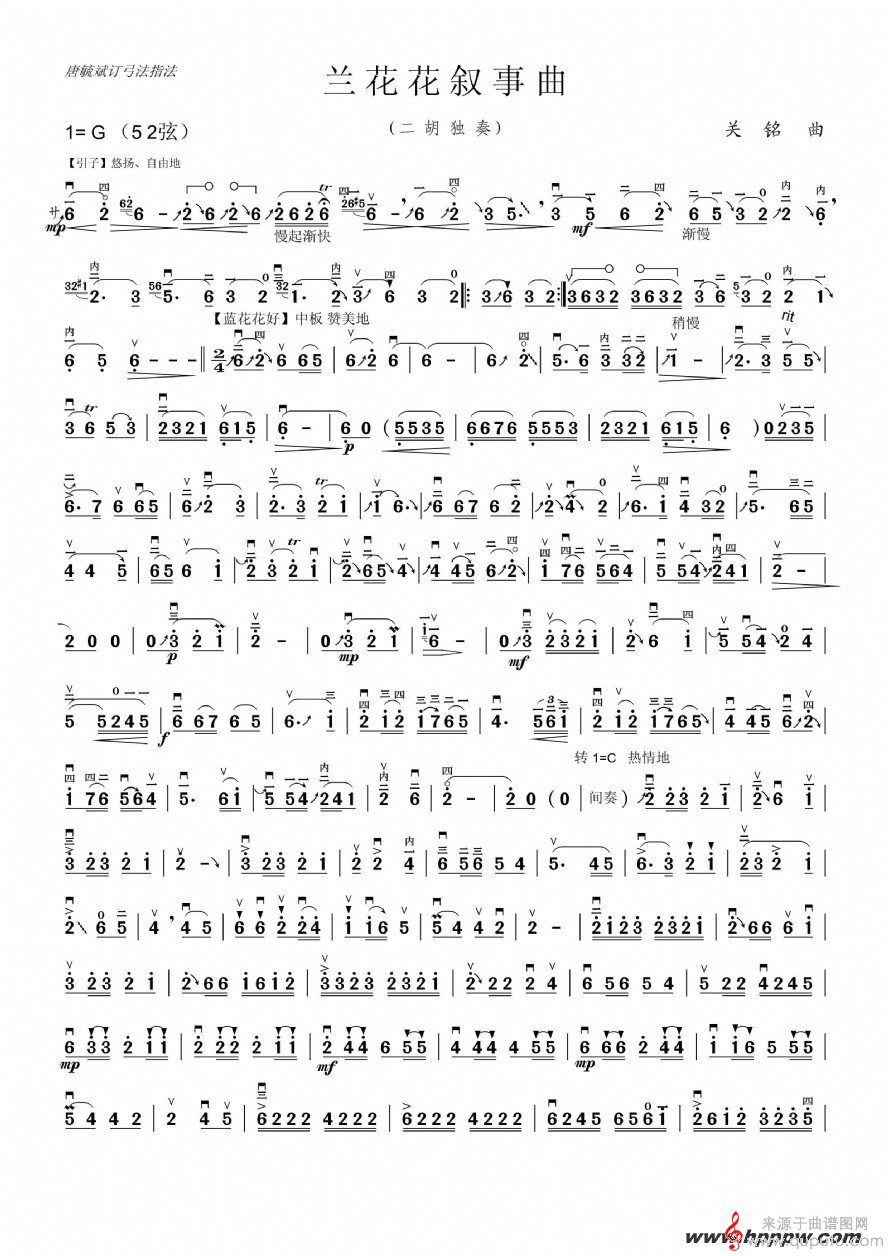 曲谱图网为您提供兰花花二胡独奏曲谱找谱子,就上曲谱图网。