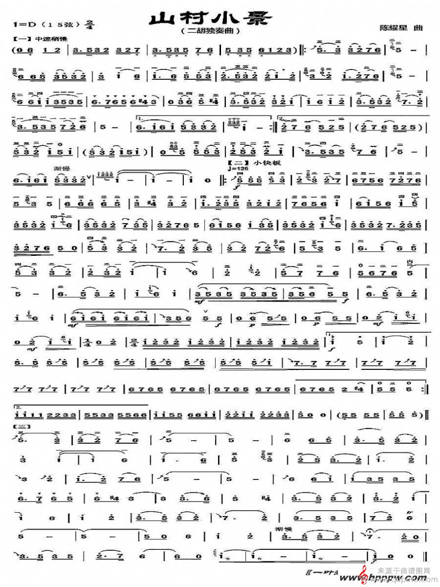 曲谱图网为您提供山村小景二胡独奏曲谱找谱子,就上曲谱图网。