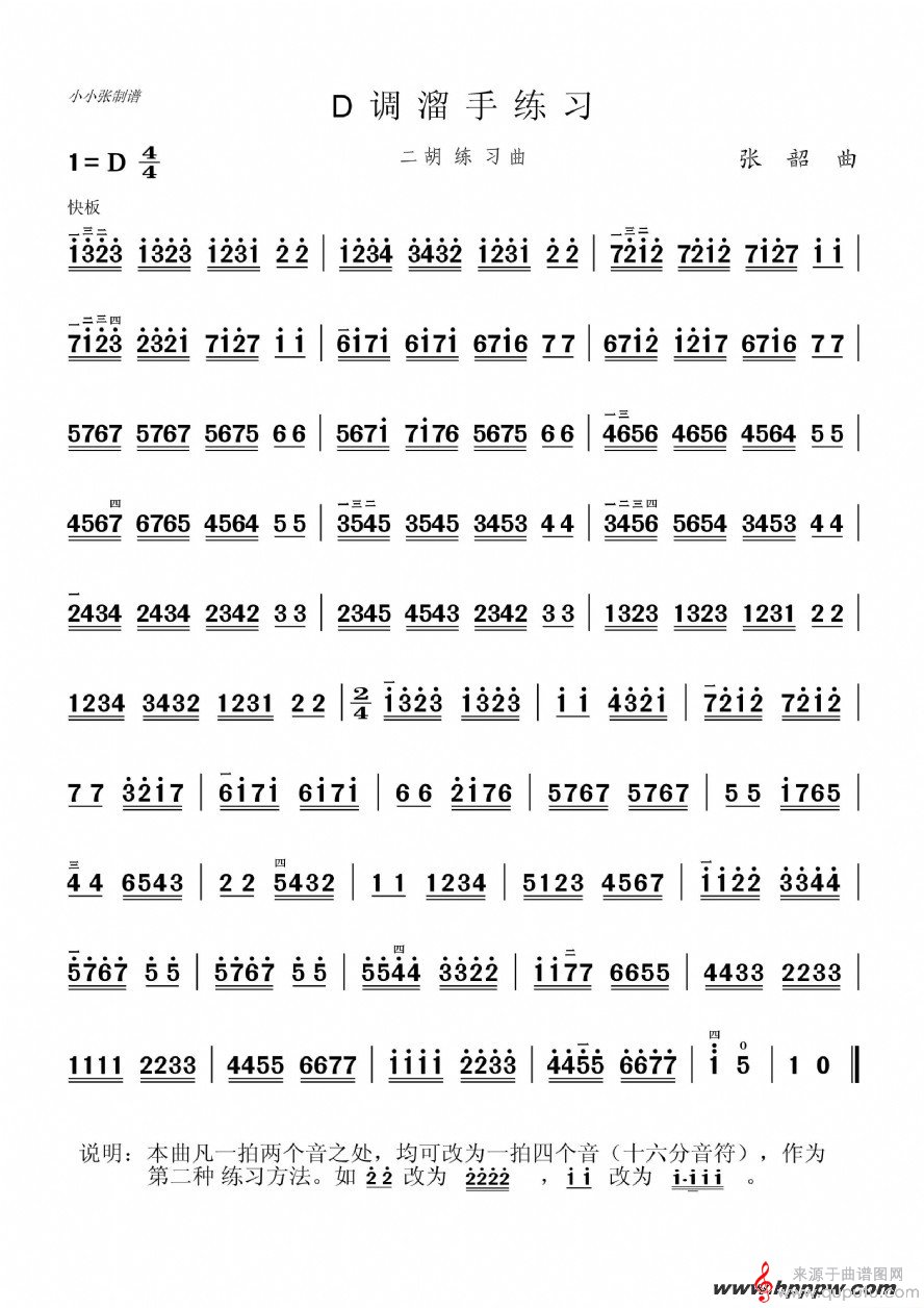 曲谱图网为您提供《d调溜手练习》二胡练习曲谱找谱子,就上曲谱图网。