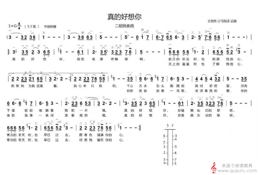 曲谱图网为您提供真的好想你二胡独奏曲谱找谱子,就上曲谱图网。