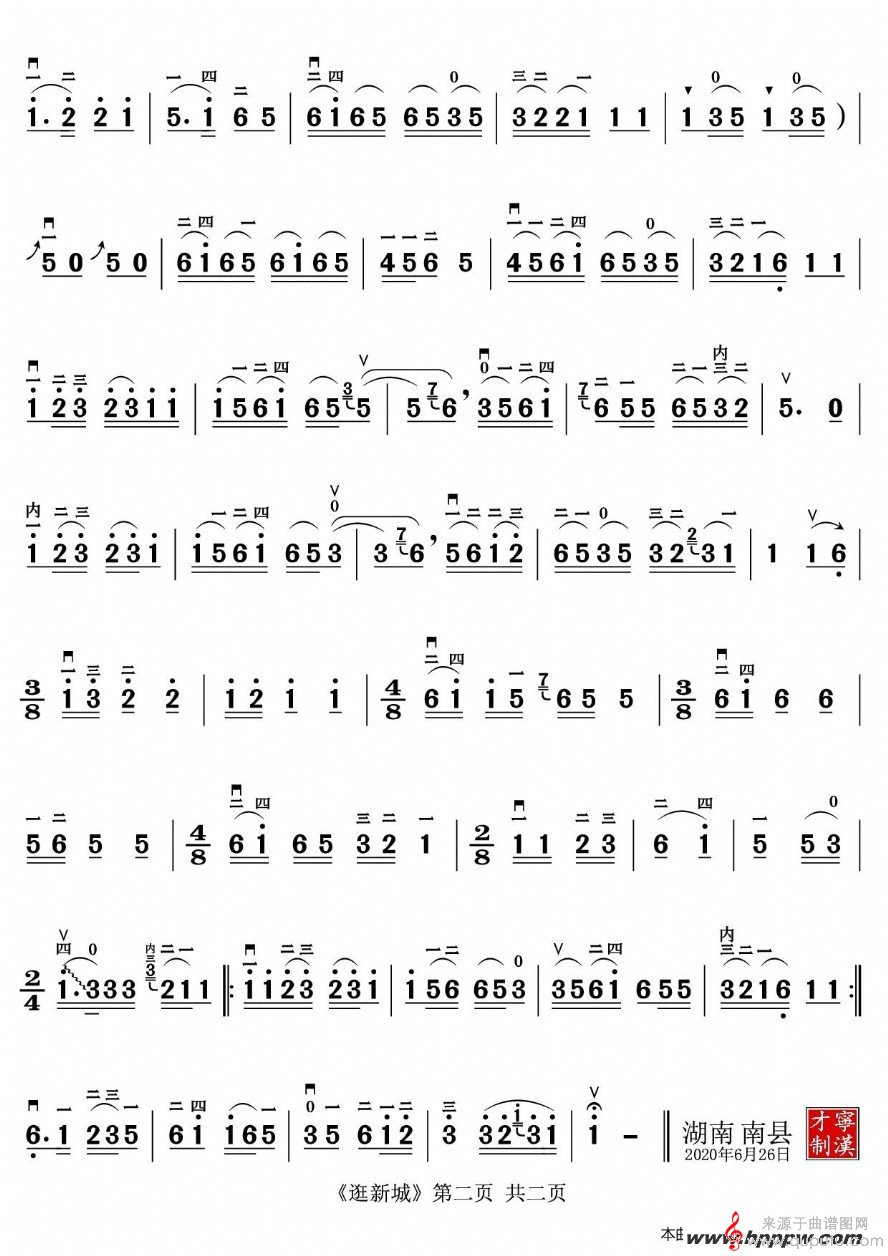 曲谱图网为您提供逛新城二胡演奏简谱找谱子,就上曲谱图网。