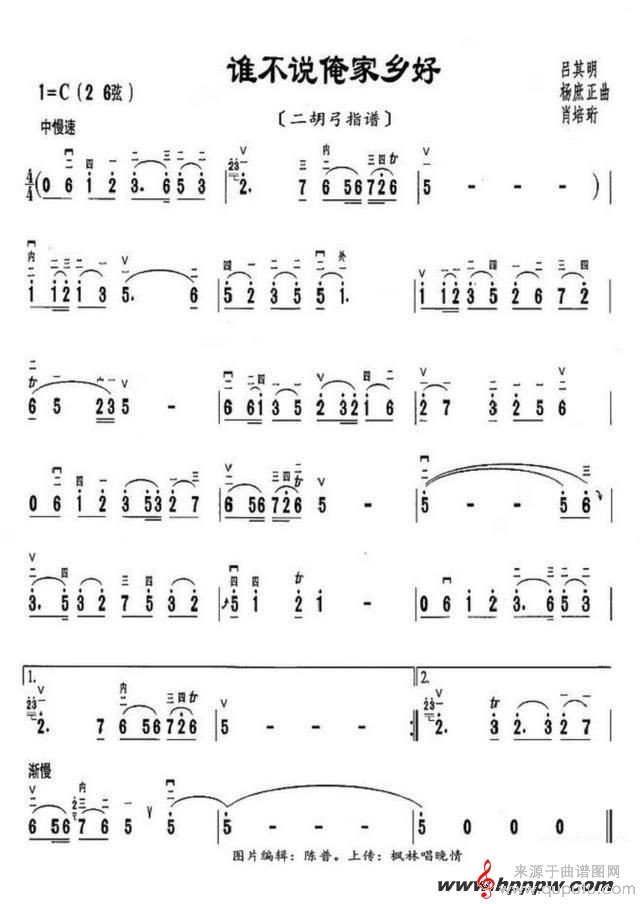 曲谱图网为您提供谁不说俺家乡好二胡独奏简谱(含弓指法)找谱子,就上曲谱图网。