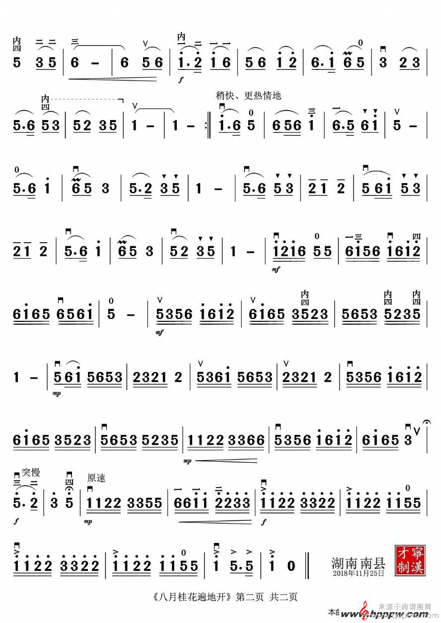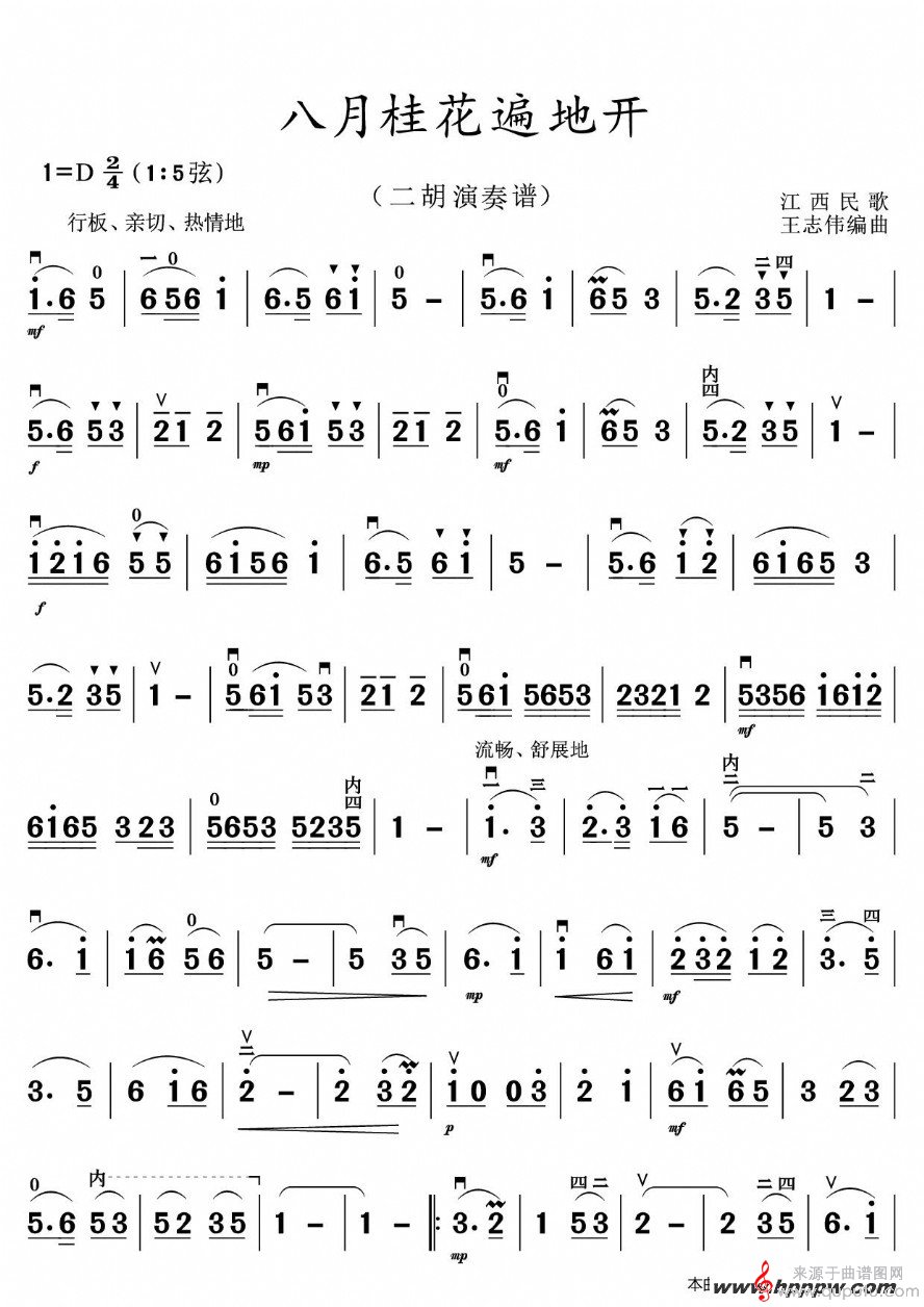 曲谱图网为您提供八月桂花遍地开二胡演奏谱(江西民歌)找谱子,就上曲谱图网。