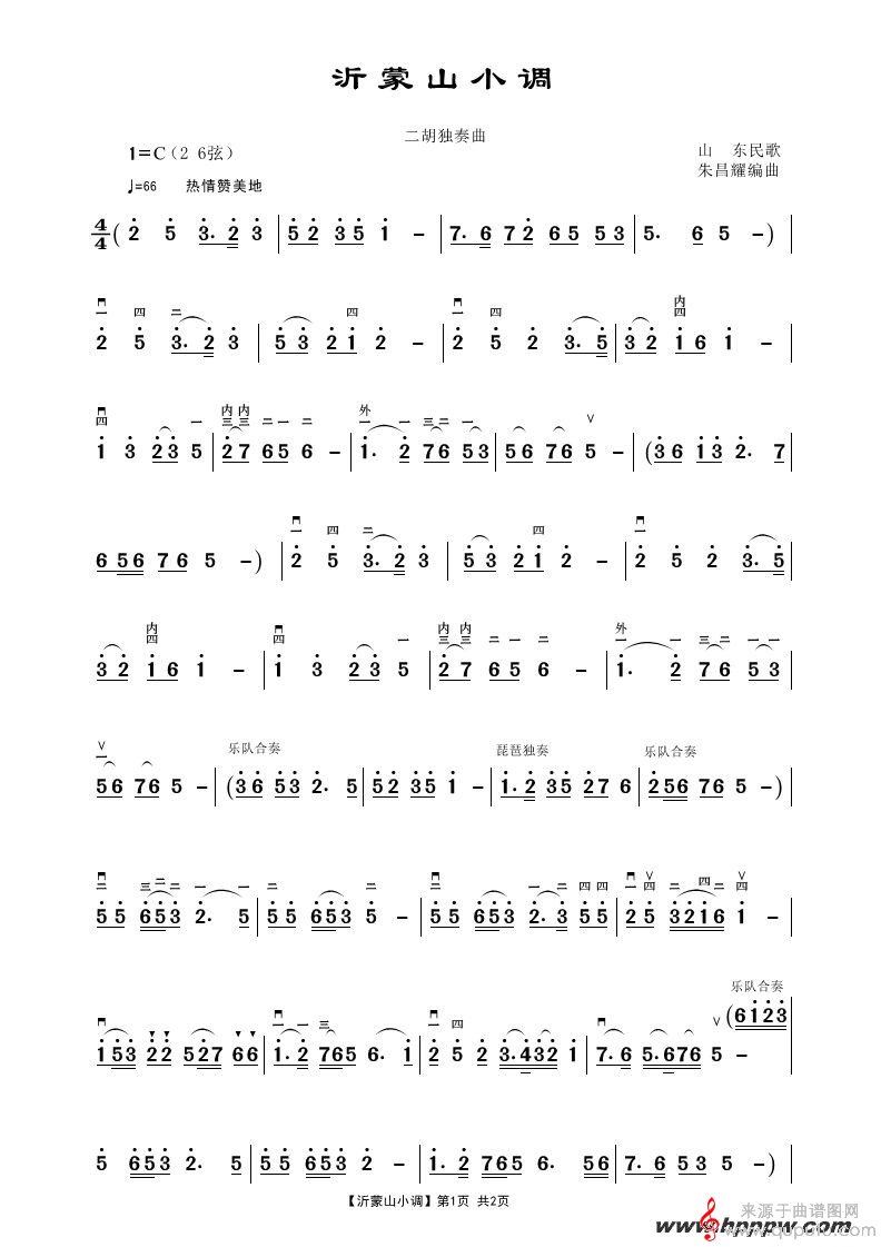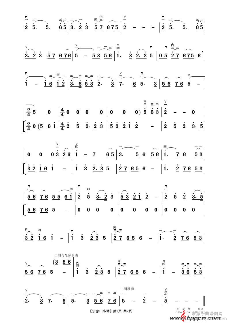 曲谱图网为您提供沂蒙山小调二胡独奏曲谱(山东民歌)找谱子,就上曲谱图网。