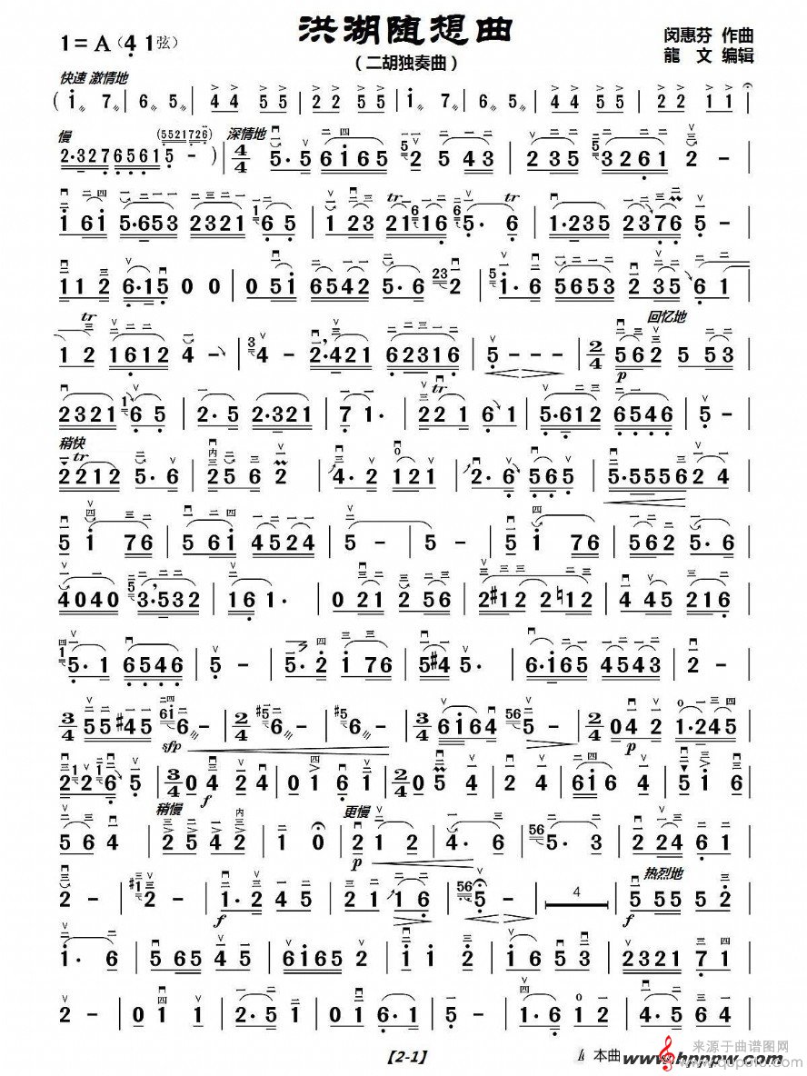 曲谱图网为您提供洪湖随想曲二胡独奏曲谱找谱子,就上曲谱图网。