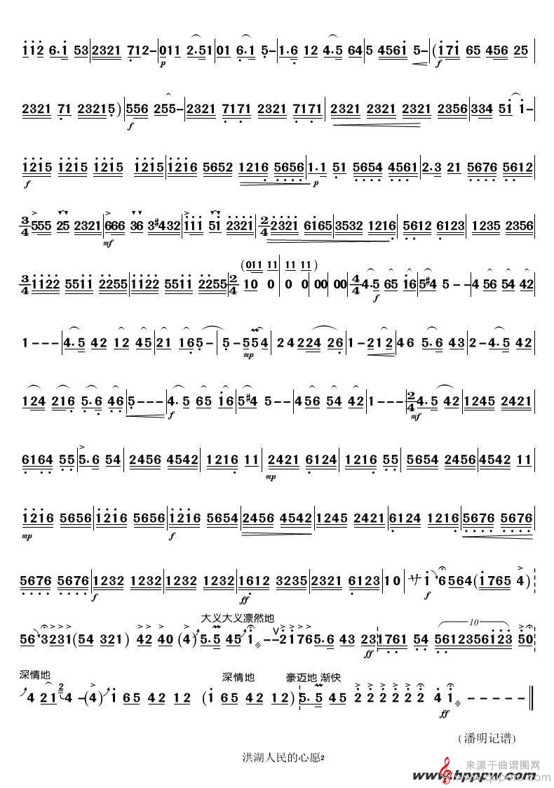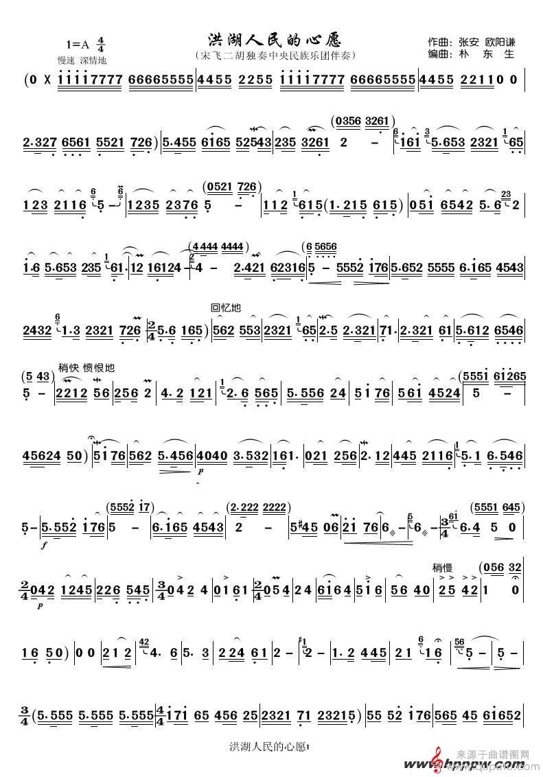 洪湖人民的心愿二胡独奏伴奏曲谱宋飞版