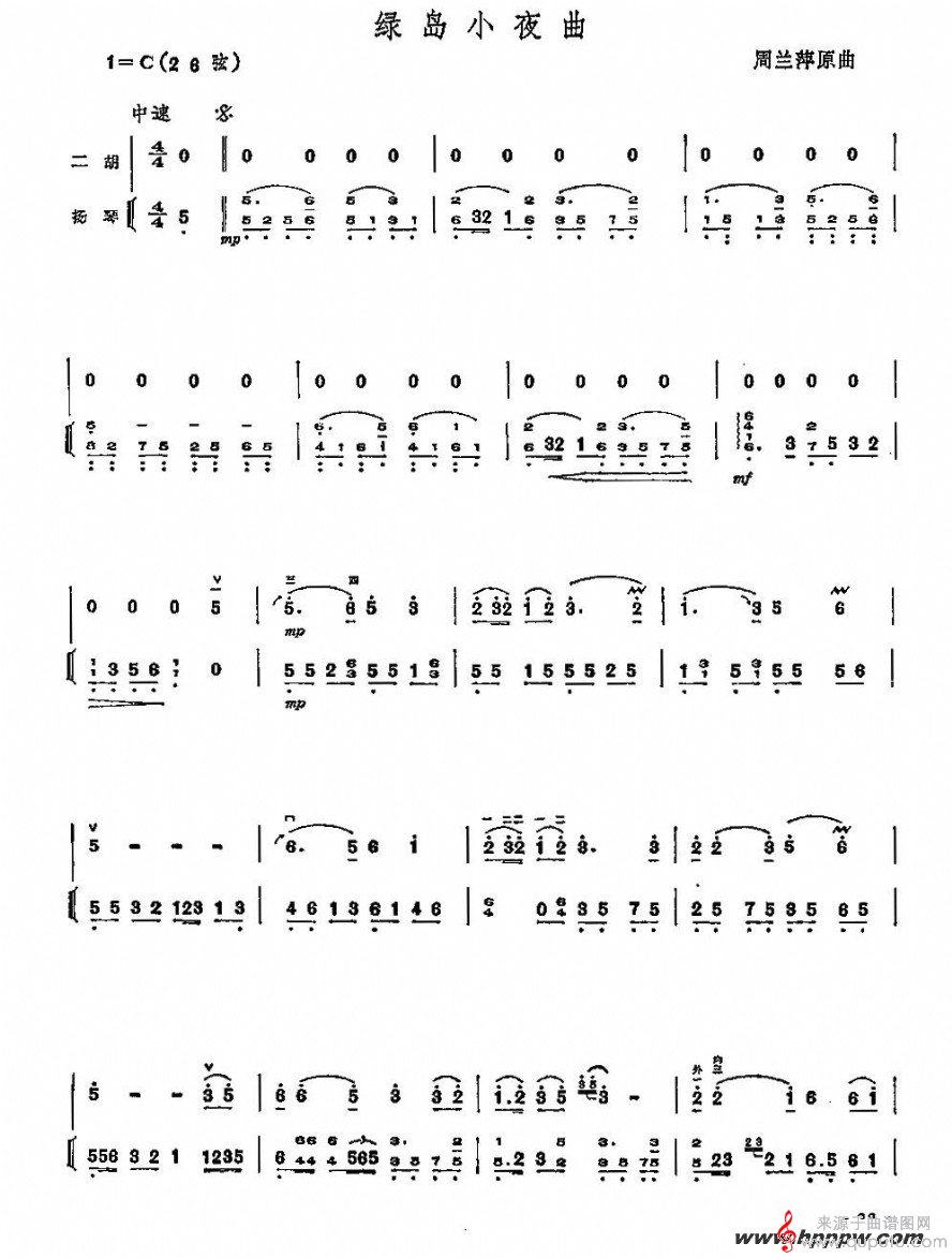 曲谱图网为您提供绿岛小夜曲二胡扬琴合奏曲谱找谱子,就上曲谱图网。