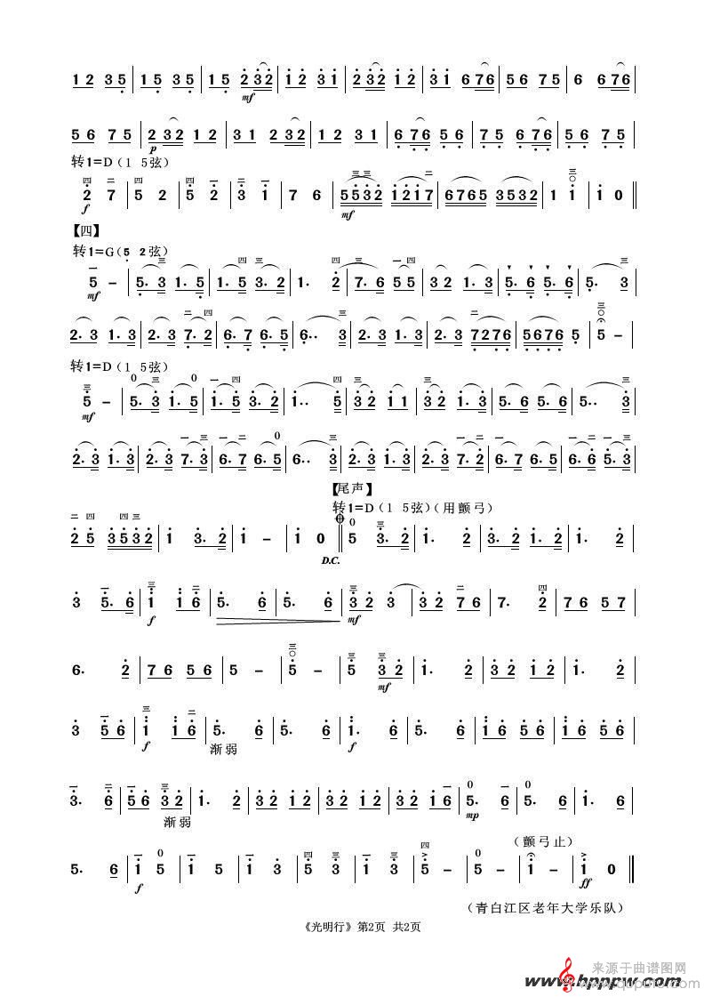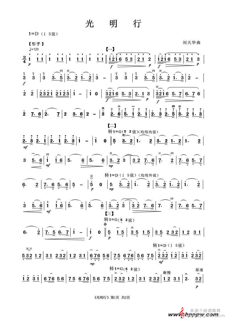 曲谱图网为您提供光明行二胡独奏简谱找谱子,就上曲谱图网。