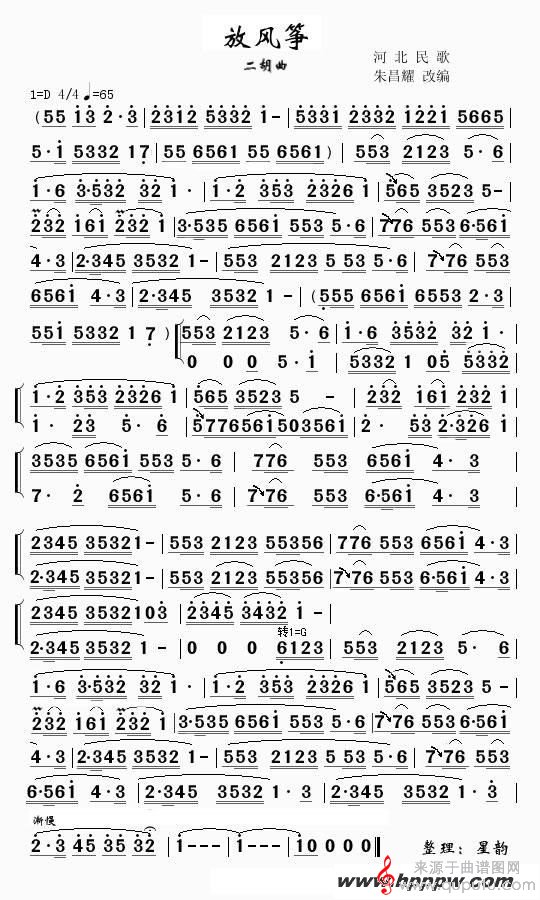 曲谱图网为您提供放风筝二胡练习曲谱(河北民歌)找谱子,就上曲谱图网。