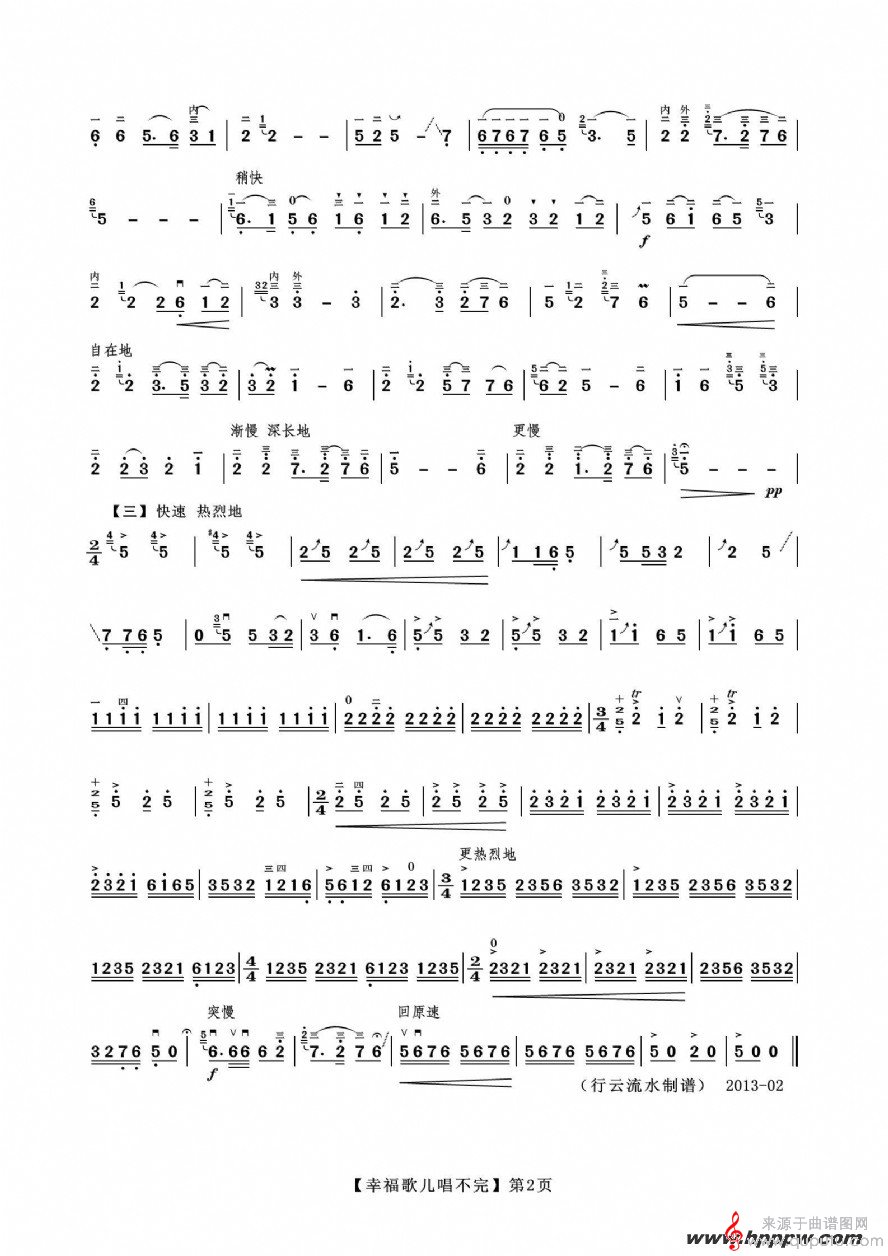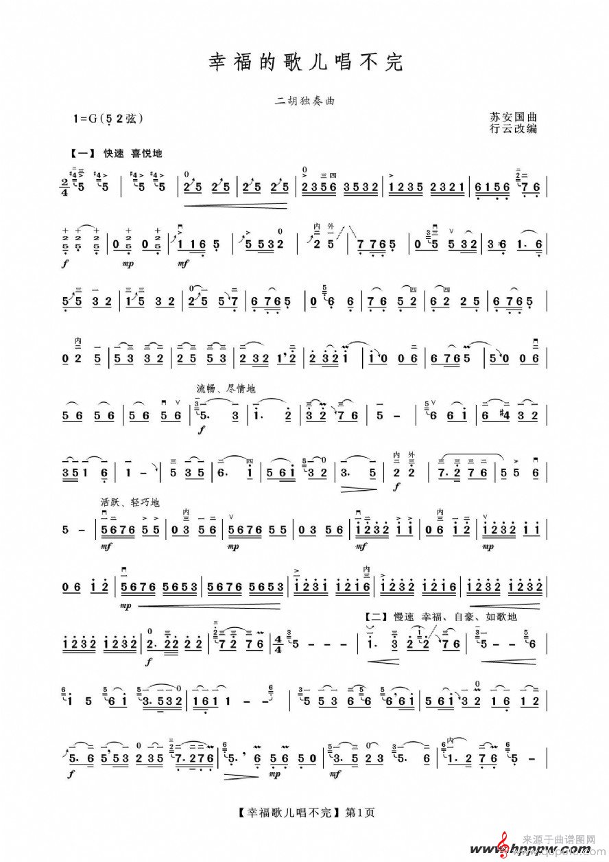 曲谱图网为您提供幸福的歌儿唱不完二胡独奏曲谱找谱子,就上曲谱图网。