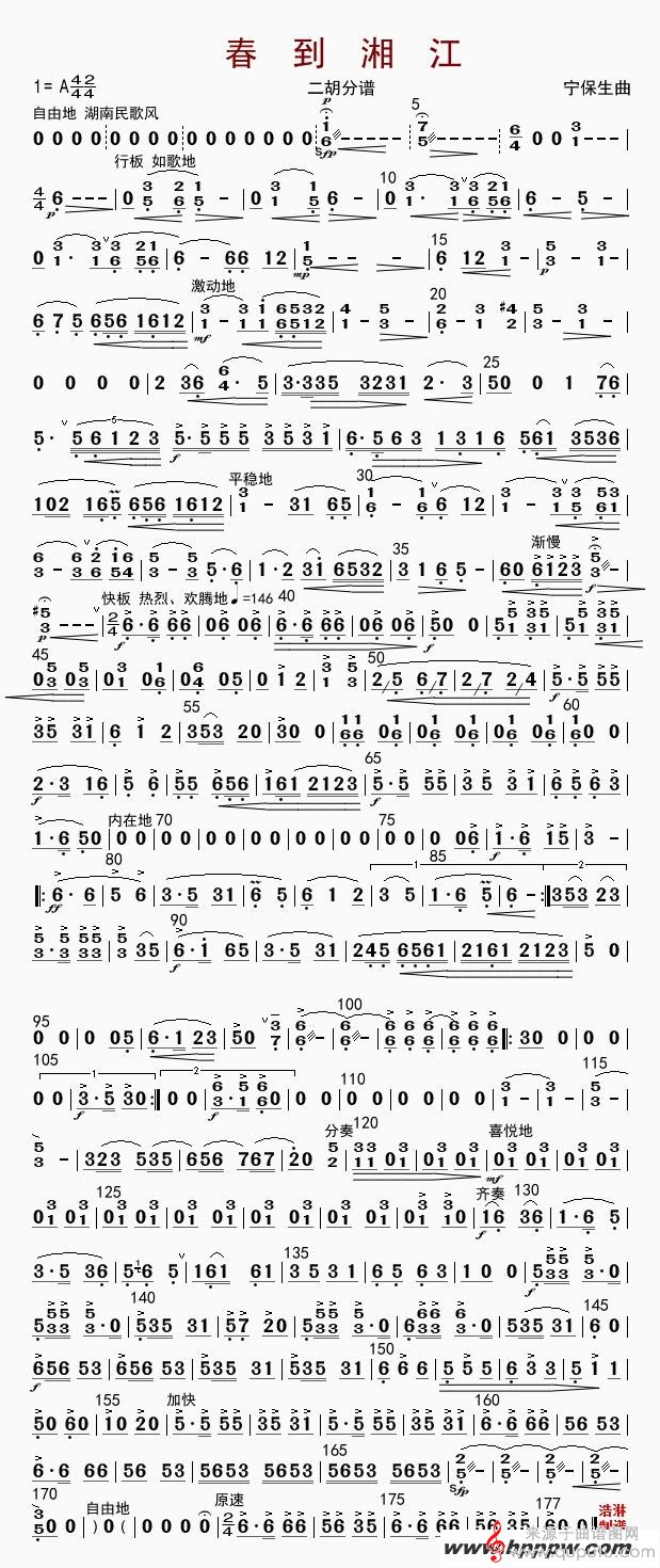 曲谱图网为您提供春到湘江二胡简谱找谱子,就上曲谱图网。