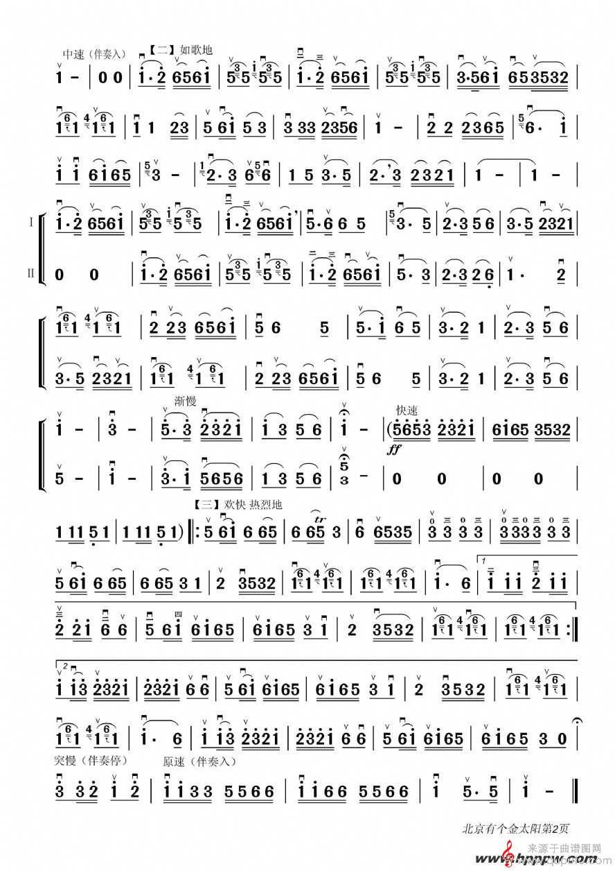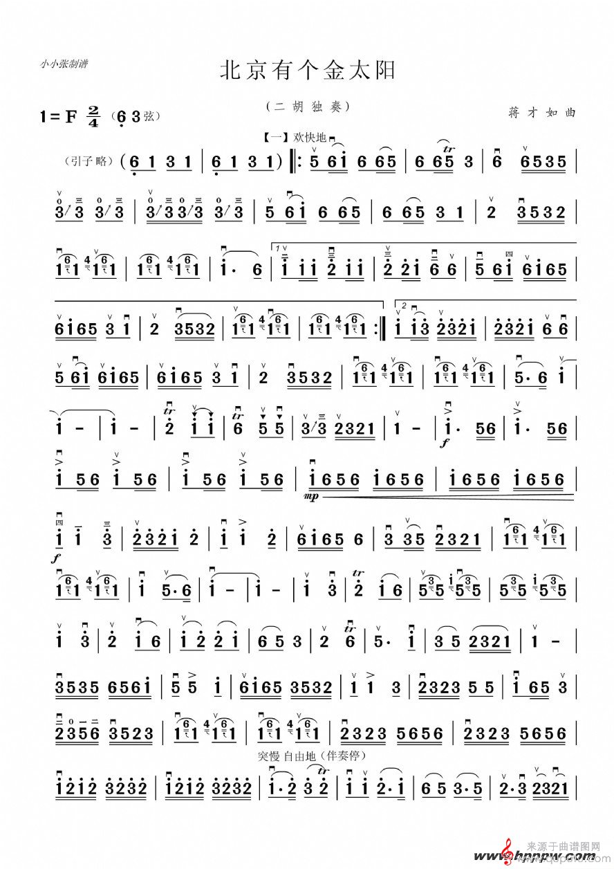 曲谱图网为您提供北京有个金太阳二胡独奏演奏简谱找谱子,就上曲谱图网。
