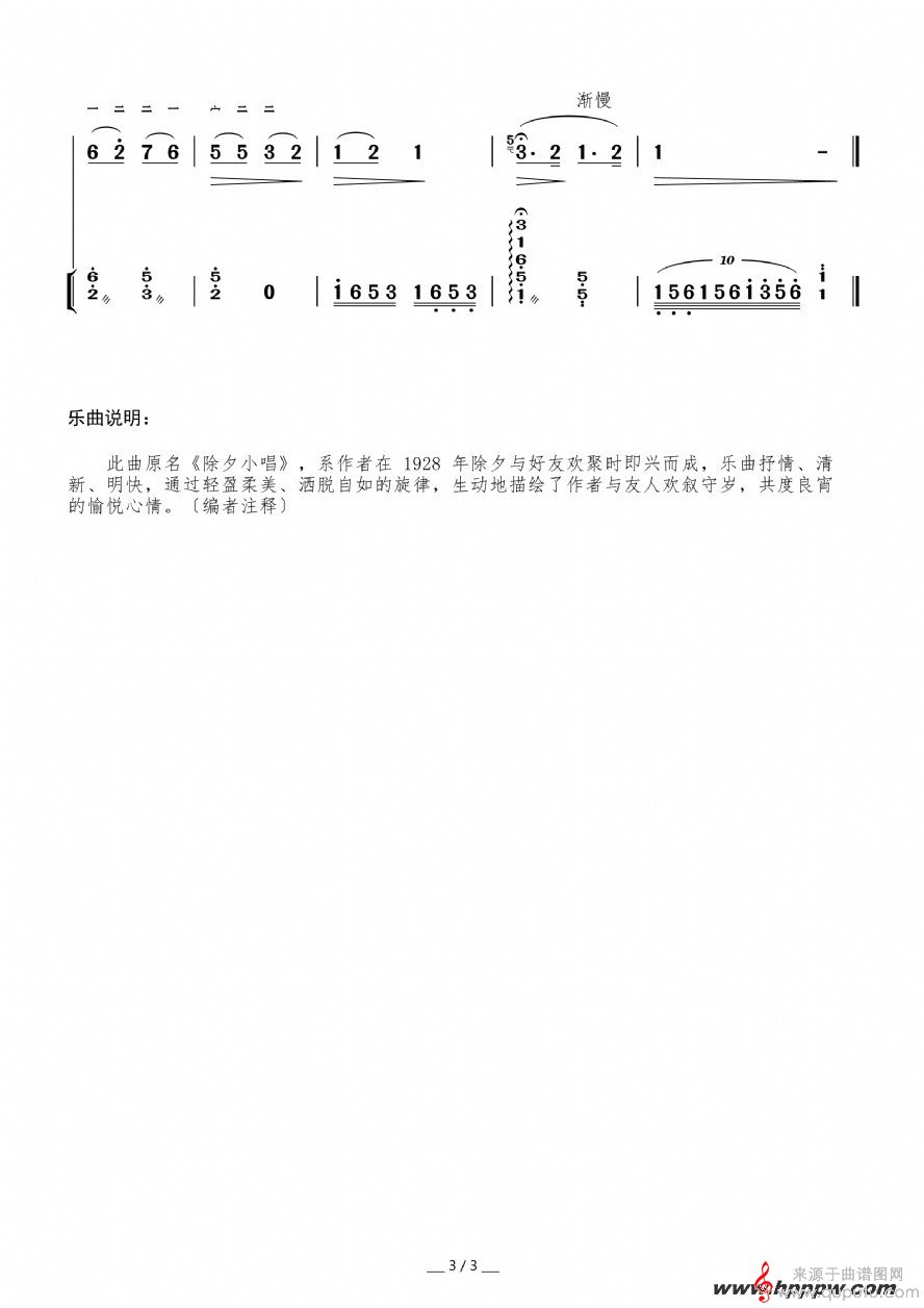 曲谱图网为您提供良宵二胡独奏谱(原名除夜小唱)找谱子,就上曲谱图网。