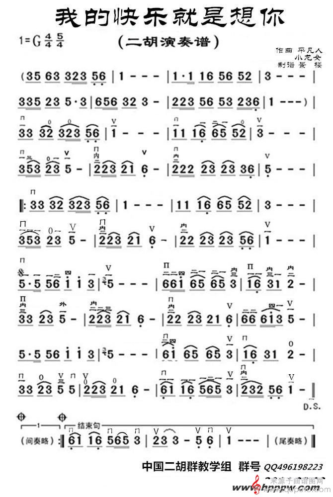 曲谱图网为您提供我的快乐就是想你二胡演奏简谱找谱子,就上曲谱图网。
