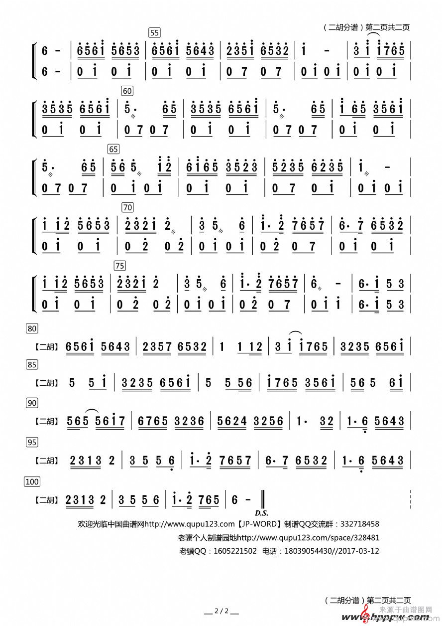 曲谱图网为您提供紫竹调二胡演奏简谱找谱子,就上曲谱图网。