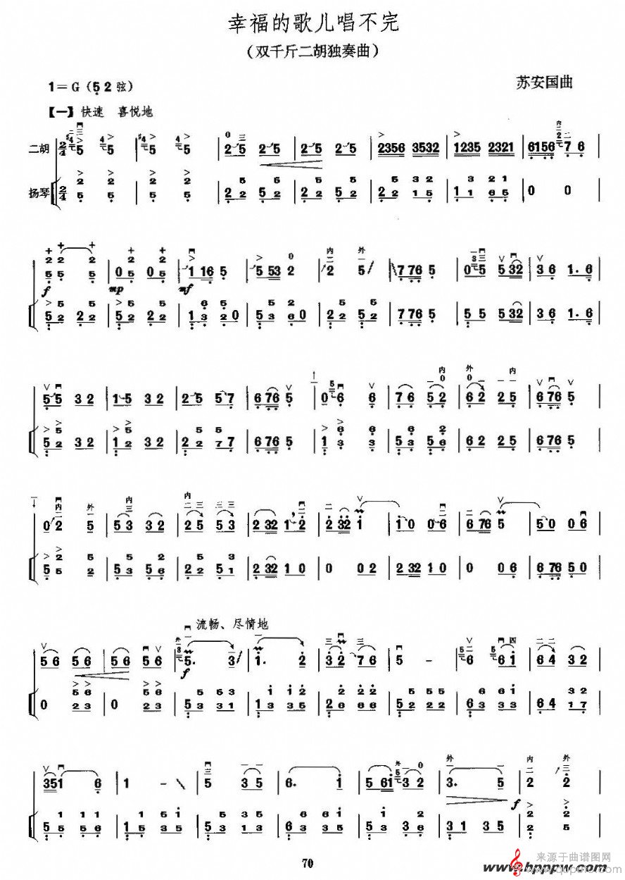 幸福的歌儿唱不完(幸福的歌儿唱不完二胡独奏伴奏简谱曲谱)二胡谱