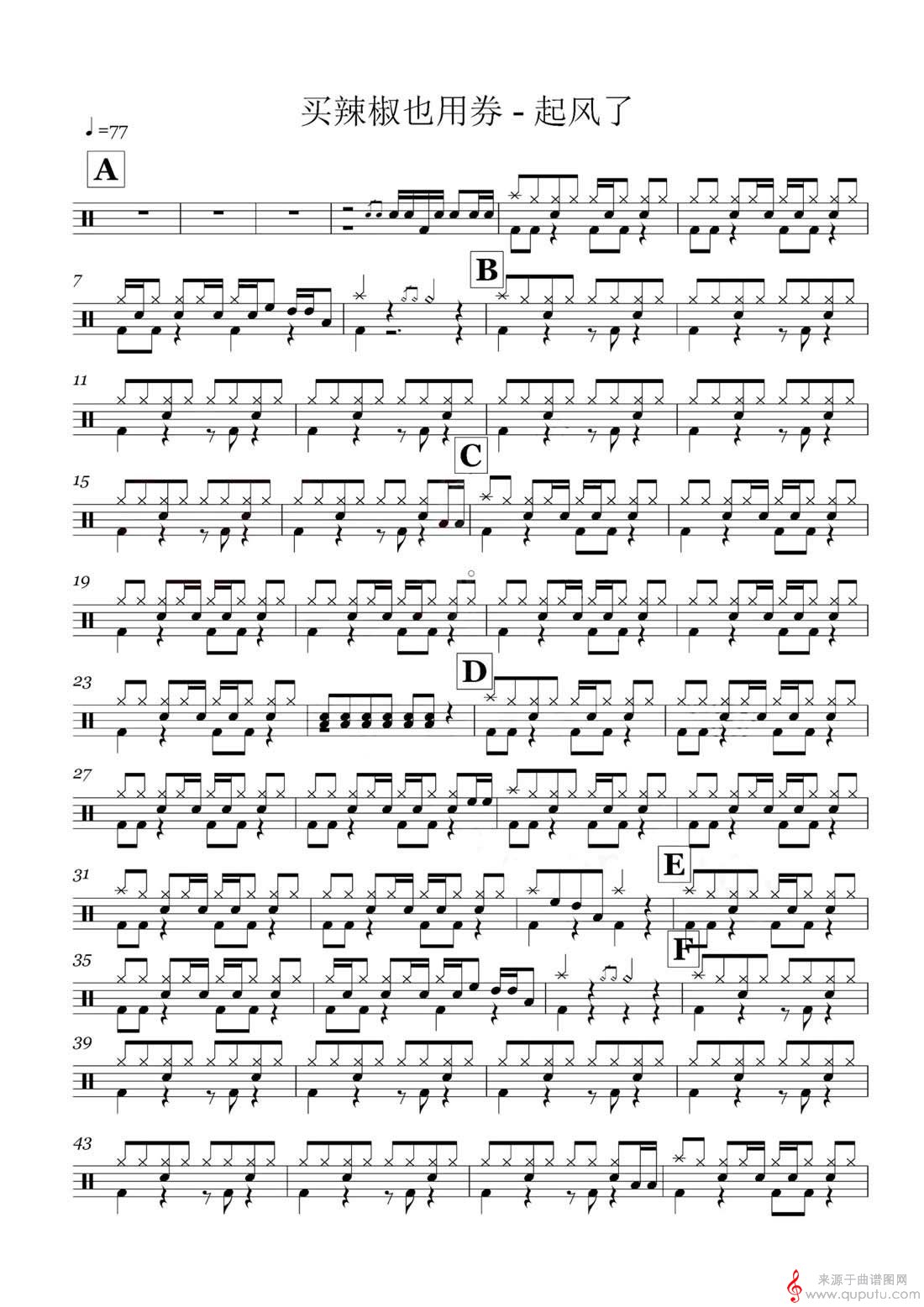 曲谱图网为您提供起风了(起风了架子鼓伴奏完整鼓谱)找谱子,就上曲谱图网。