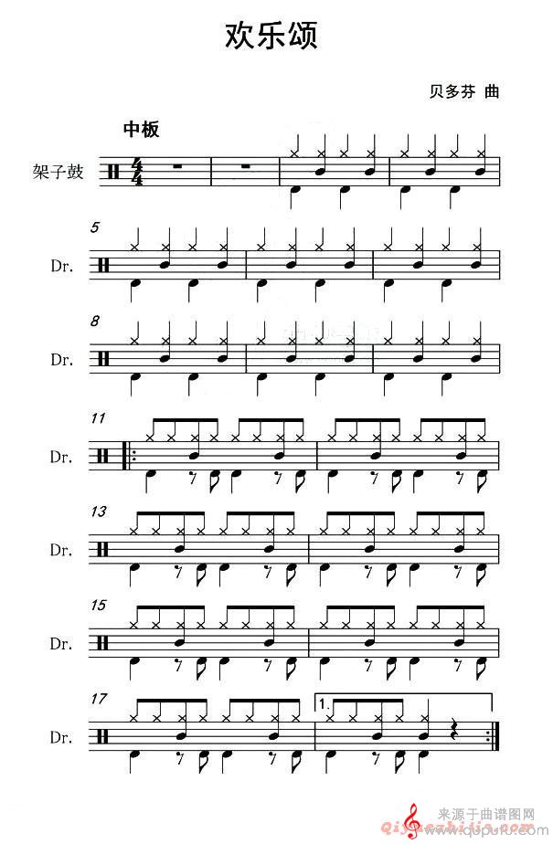 曲谱图网为您提供欢乐颂(架子鼓伴奏鼓谱)找谱子,就上曲谱图网。
