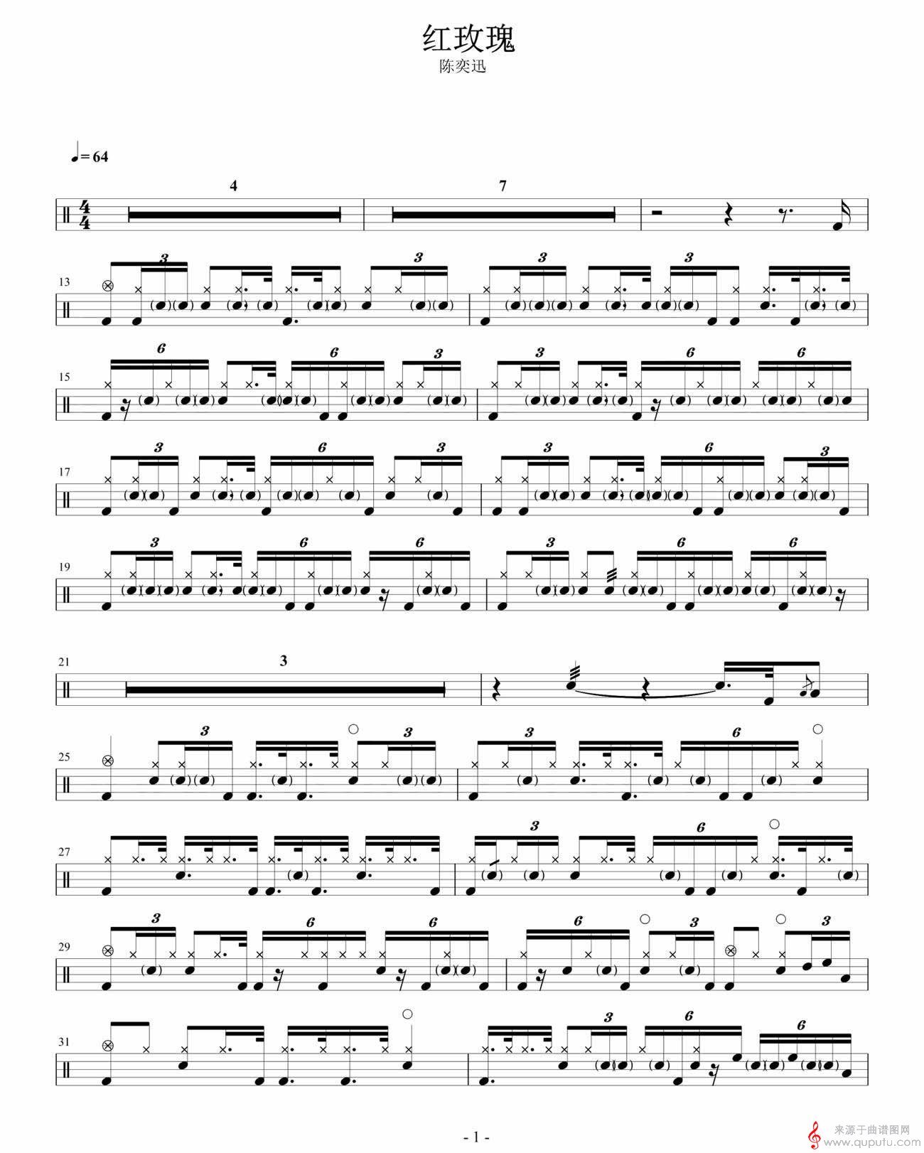 曲谱图网为您提供红玫瑰(架子鼓鼓谱)找谱子,就上曲谱图网。
