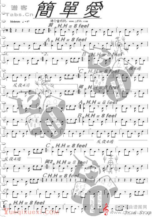 曲谱图网为您提供简单爱(简单爱架子鼓教学鼓谱)找谱子,就上曲谱图网。