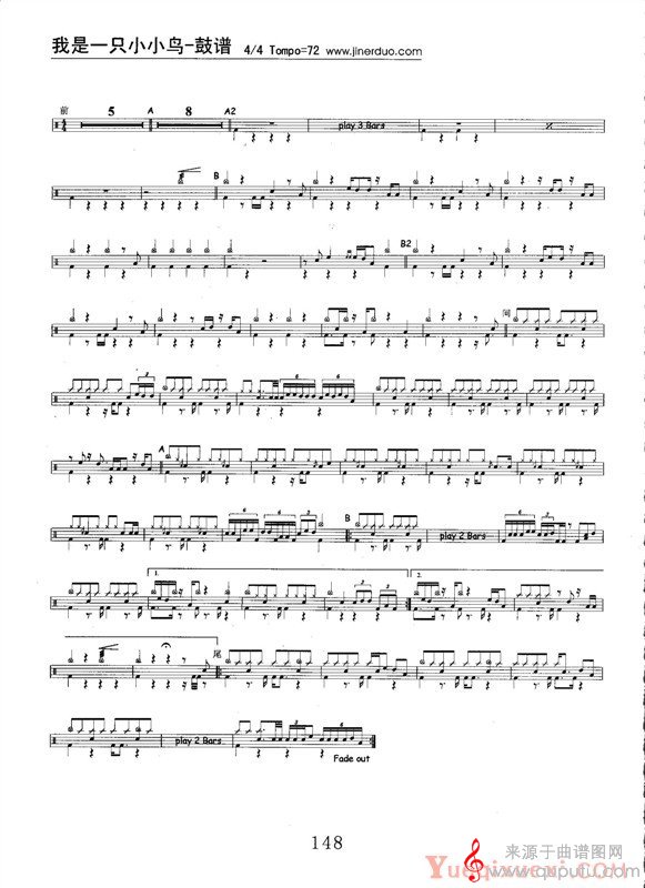曲谱图网为您提供我是一只小小鸟(架子鼓独奏伴奏鼓谱)找谱子,就上曲谱图网。