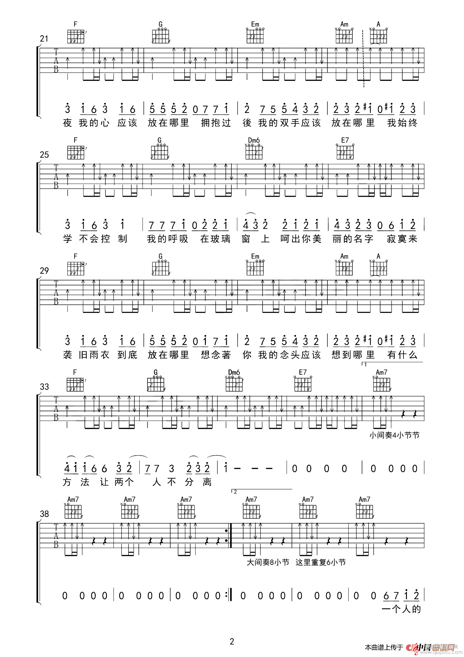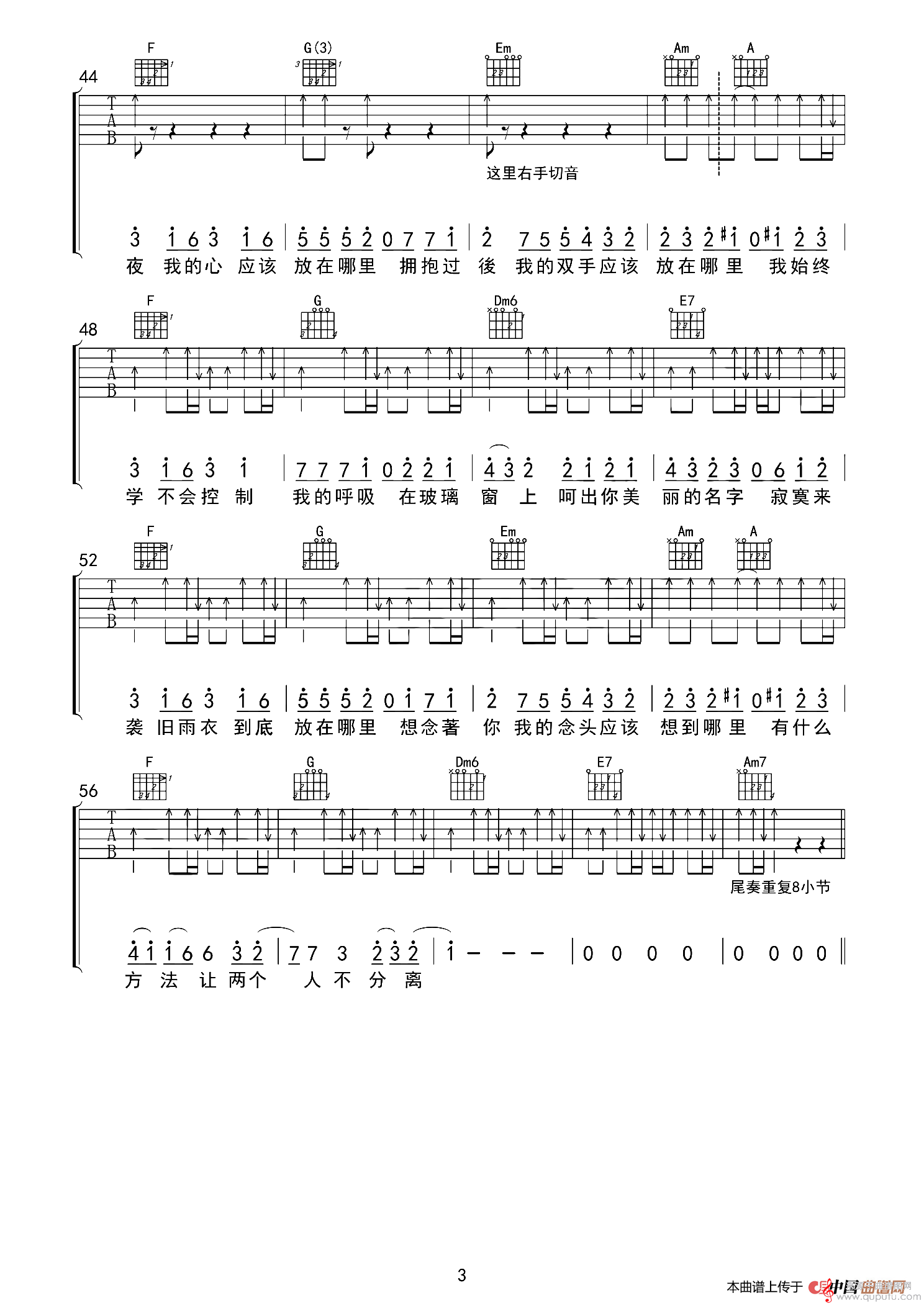 当前位置:曲谱图网器乐曲谱吉他突然想起你(小宇吉他站编配版)