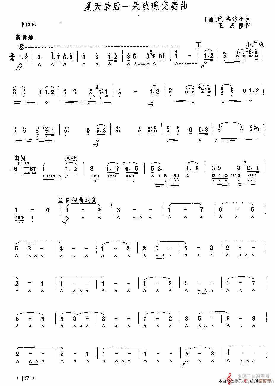 曲谱图网为您提供夏天最后一朵玫瑰变奏曲(口琴曲谱)找谱子,就上曲谱图网。