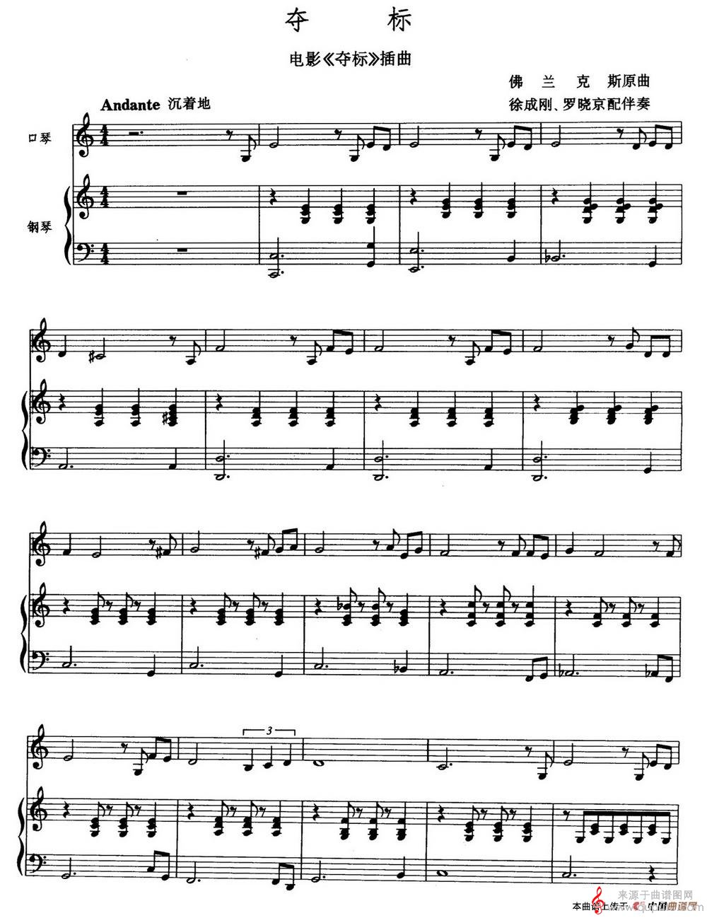 曲谱图网为您提供夺标(口琴曲谱)找谱子,就上曲谱图网。