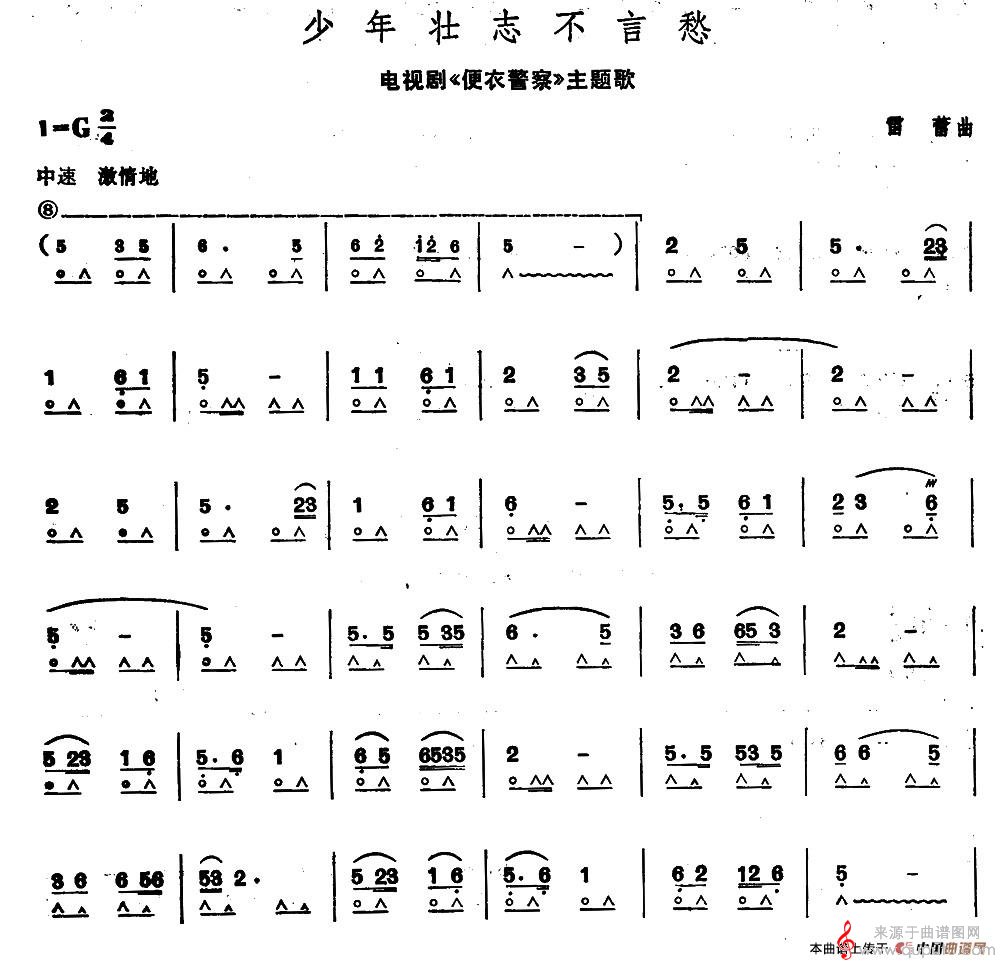 曲谱图网为您提供少年壮志不言愁(口琴曲独奏简谱)找谱子,就上曲谱图网。