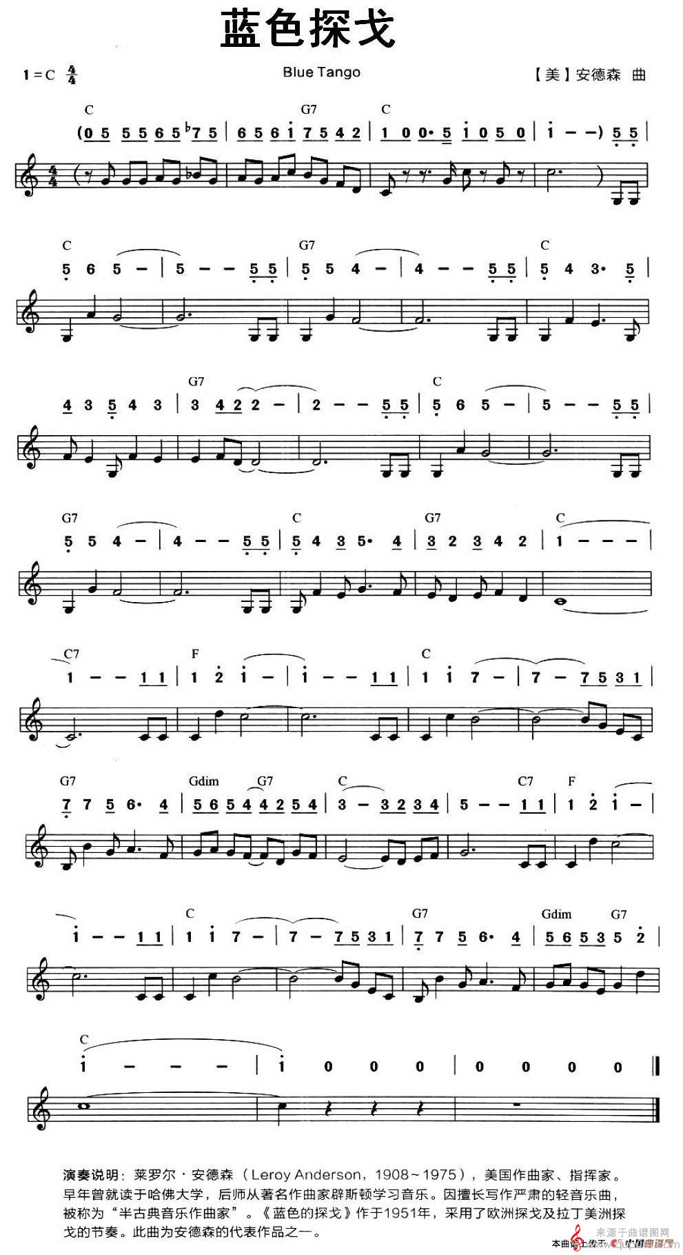 曲谱图网为您提供蓝色探戈(口琴吉他四重奏线简谱混排版)找谱子,就上曲谱图网。