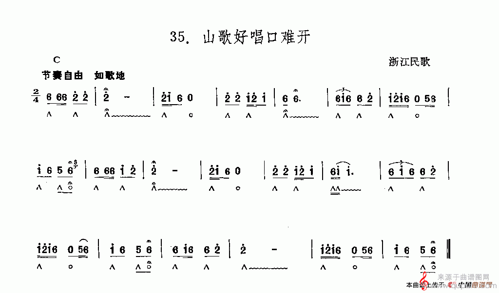 曲谱图网为您提供山歌好唱口难开(口琴曲谱)找谱子,就上曲谱图网。