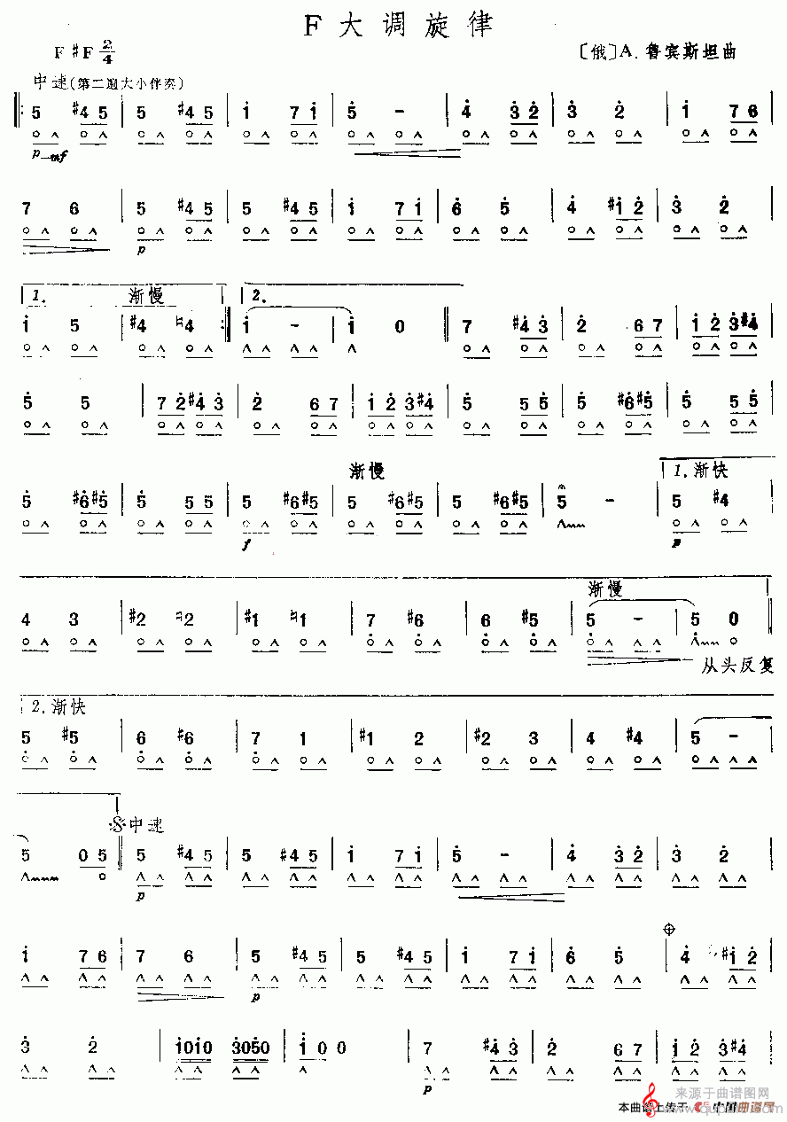 曲谱图网为您提供F大调旋律(口琴谱)找谱子,就上曲谱图网。
