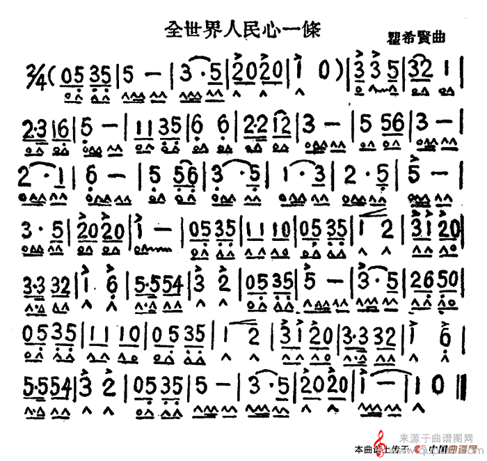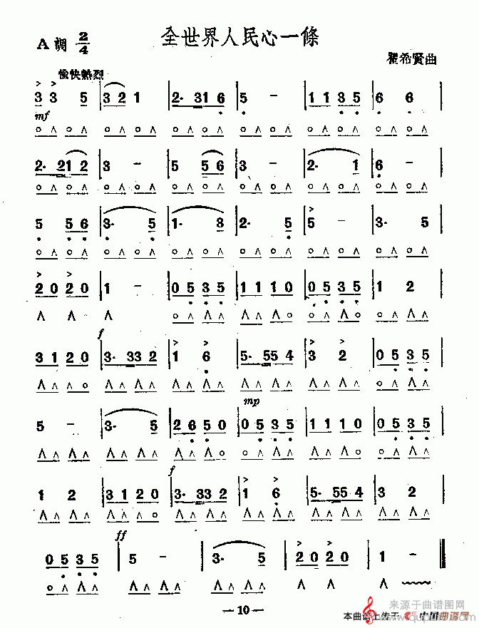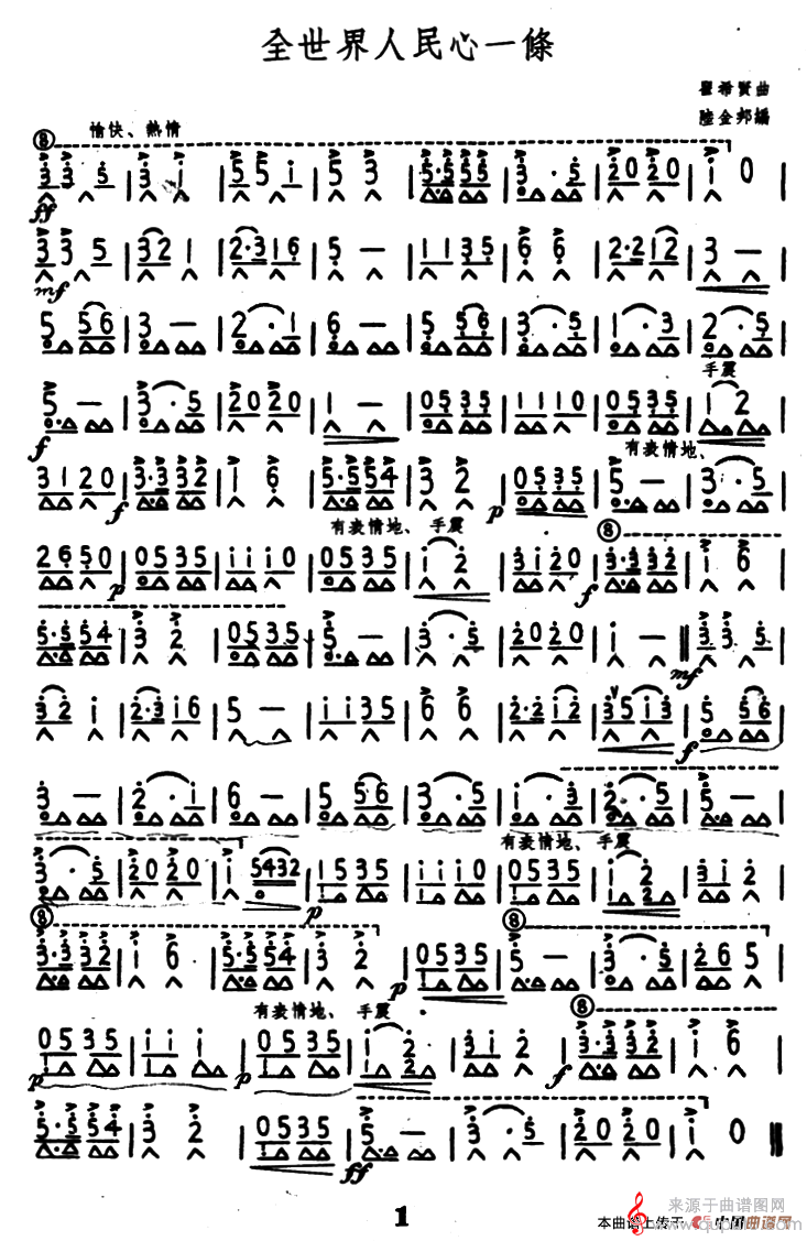 曲谱图网为您提供全世界人民心一条(口琴乐曲简谱)找谱子,就上曲谱图网。