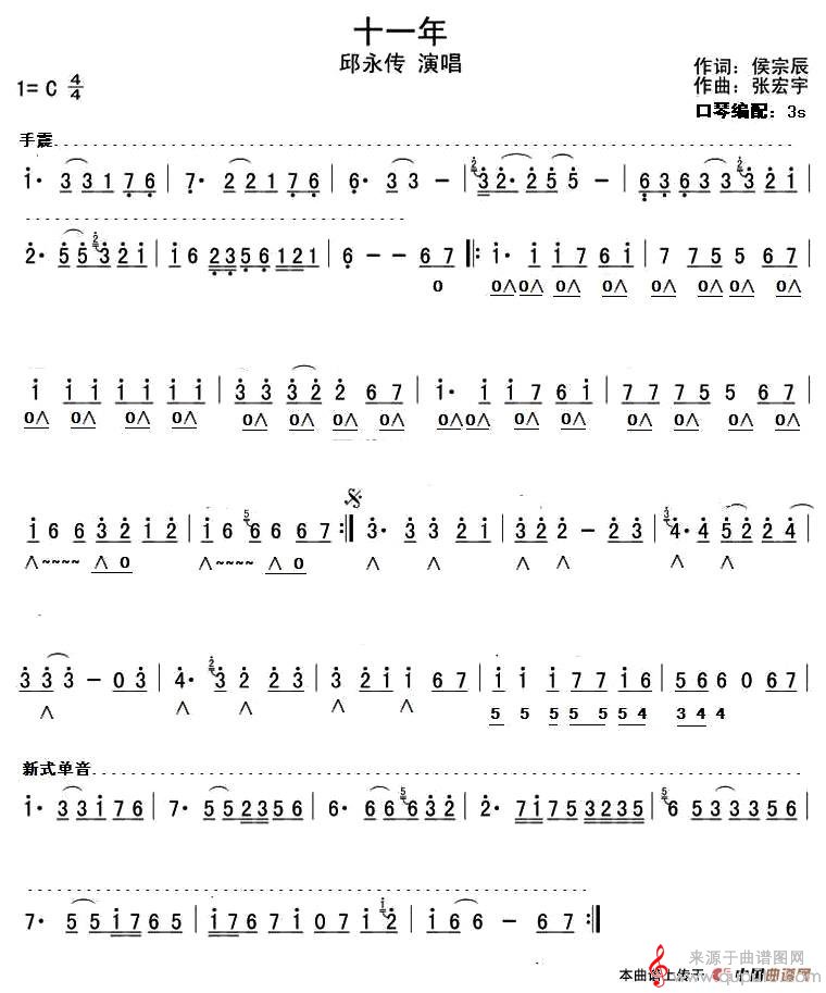曲谱图网为您提供十一年(口琴简谱)找谱子,就上曲谱图网。