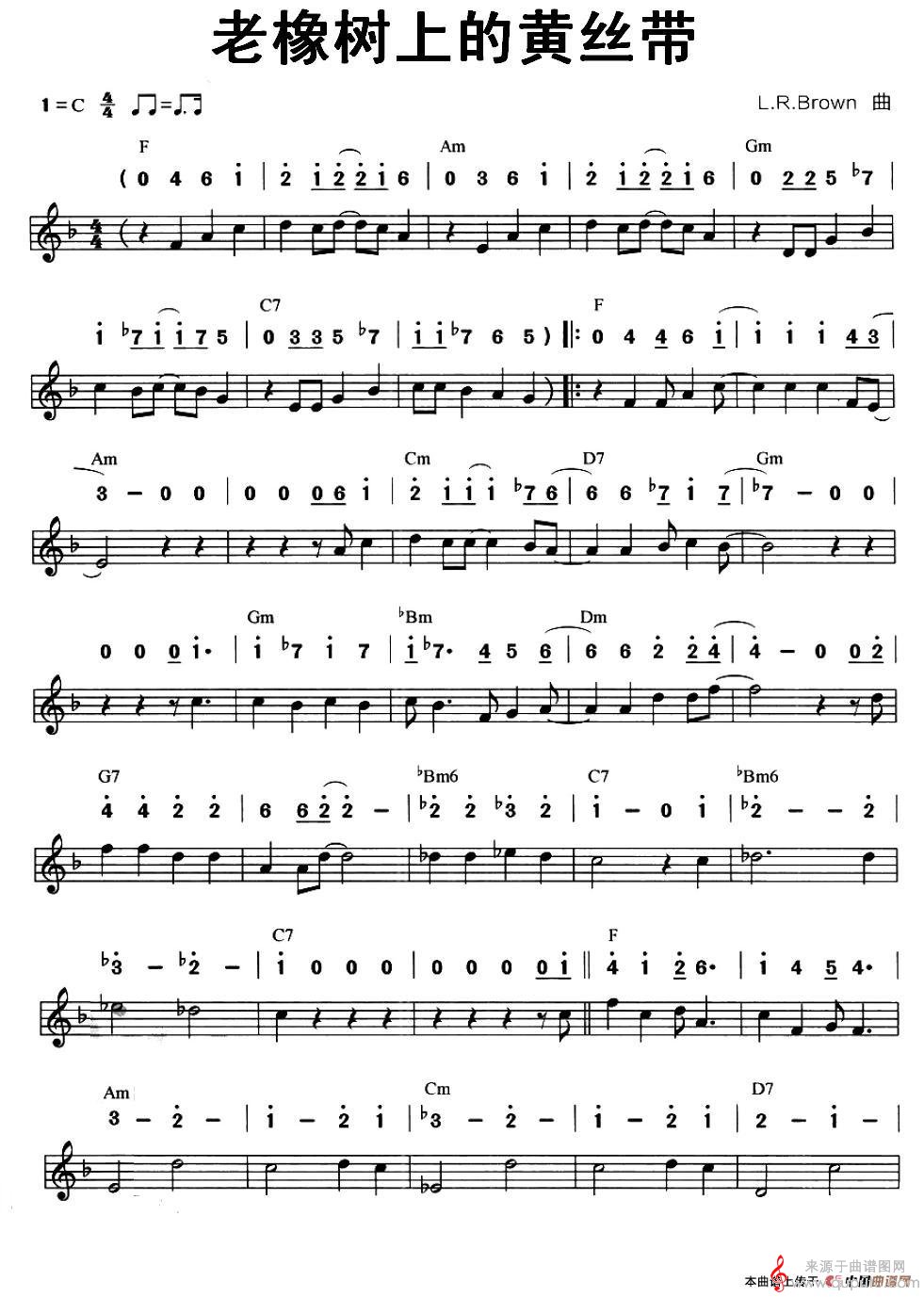 曲谱图网为您提供老橡树上的黄丝带(口琴线简谱混排版)找谱子,就上曲谱图网。
