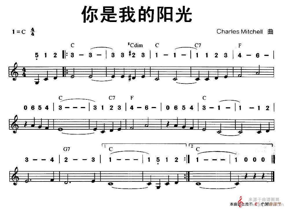 曲谱图网为您提供你是我的阳光(口琴曲线简谱混排演奏版)找谱子,就上曲谱图网。