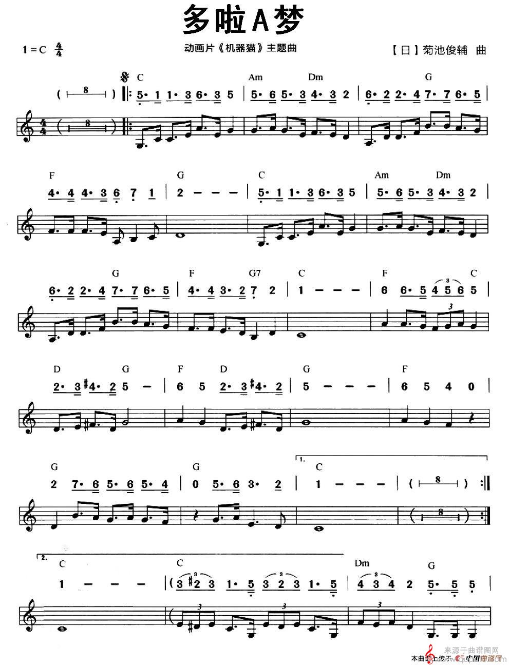 曲谱图网为您提供多啦A梦(口琴口风琴简谱)找谱子,就上曲谱图网。