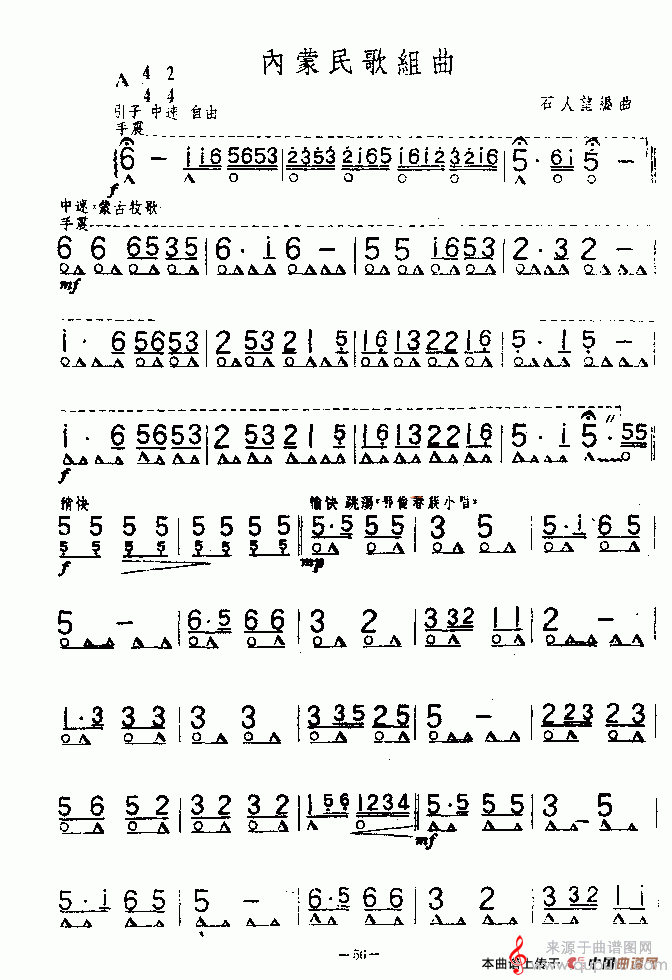 曲谱图网为您提供内蒙民歌组曲(口琴曲谱)找谱子,就上曲谱图网。