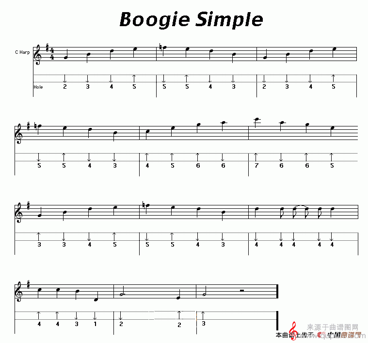 曲谱图网为您提供Boogie Simple(口琴五线曲谱)找谱子,就上曲谱图网。