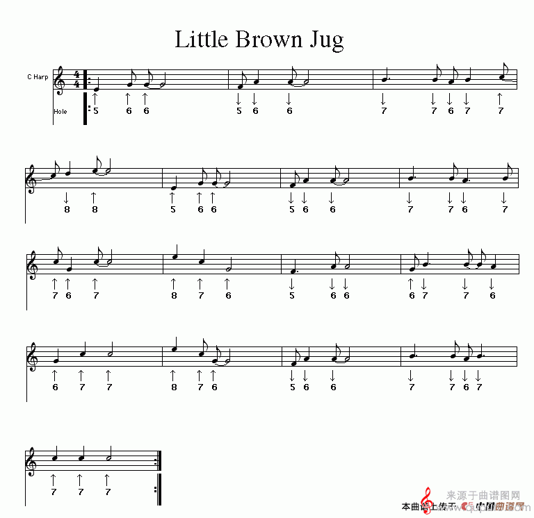 曲谱图网为您提供Little Brown Jug(口琴五线曲谱)找谱子,就上曲谱图网。