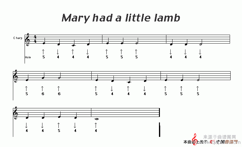 曲谱图网为您提供Mary had a little lamb(口琴曲谱)找谱子,就上曲谱图网。