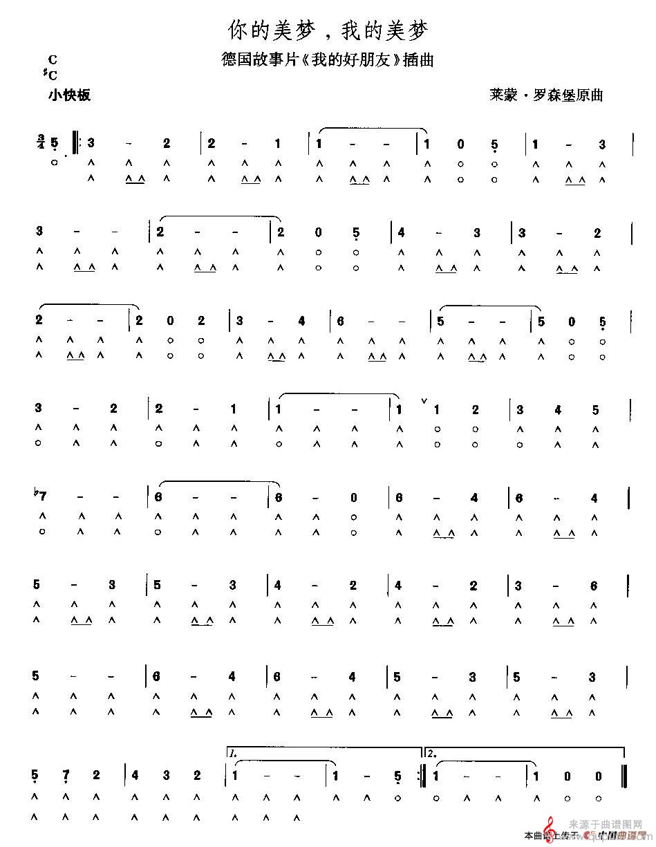 曲谱图网为您提供你的美梦我的美梦(口琴演奏简谱)找谱子,就上曲谱图网。