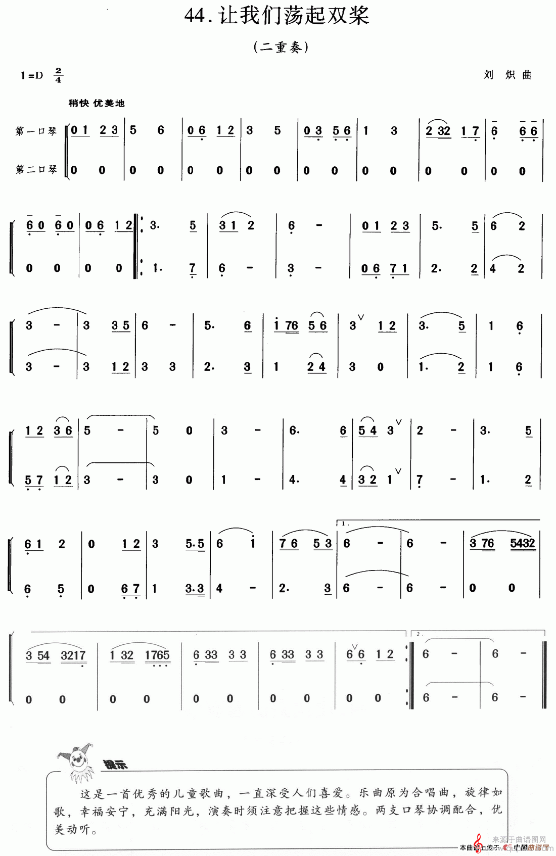 曲谱图网为您提供让我们荡起双桨(口琴曲演奏伴奏简谱二重奏)找谱子,就上曲谱图网。