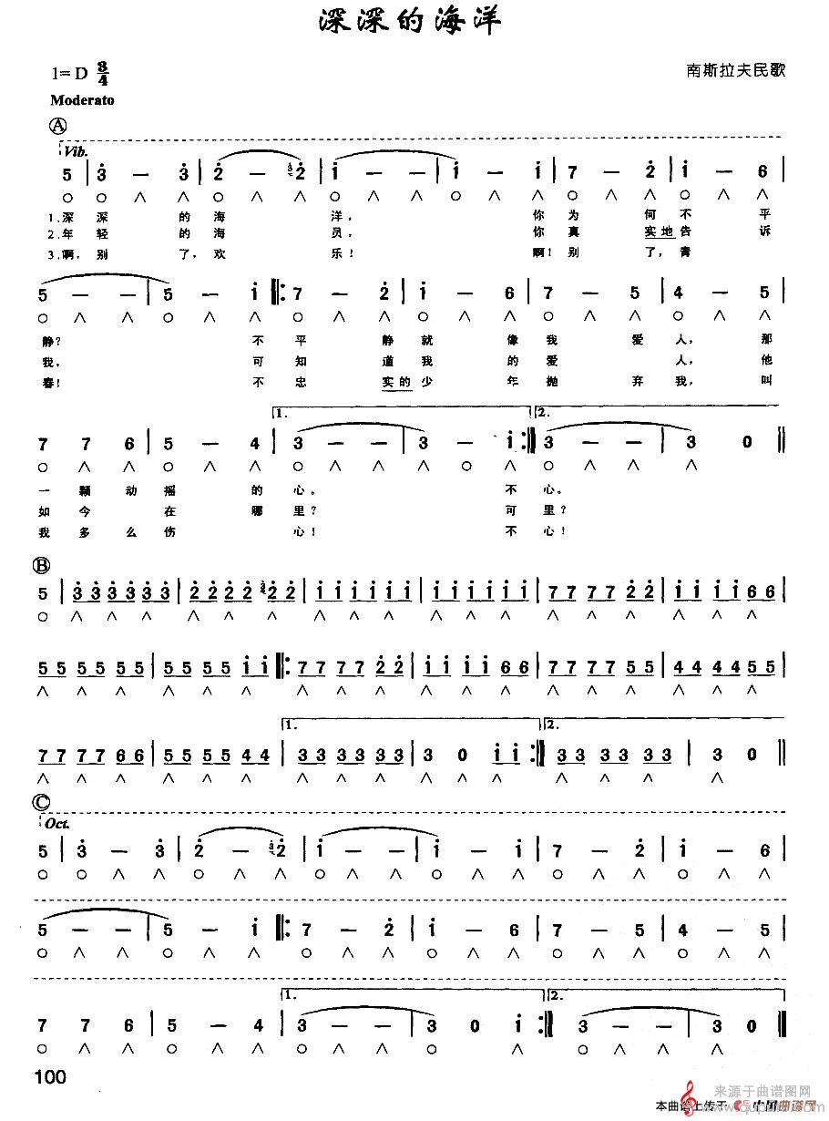 曲谱图网为您提供深深的海洋(口琴曲演奏简谱)找谱子,就上曲谱图网。
