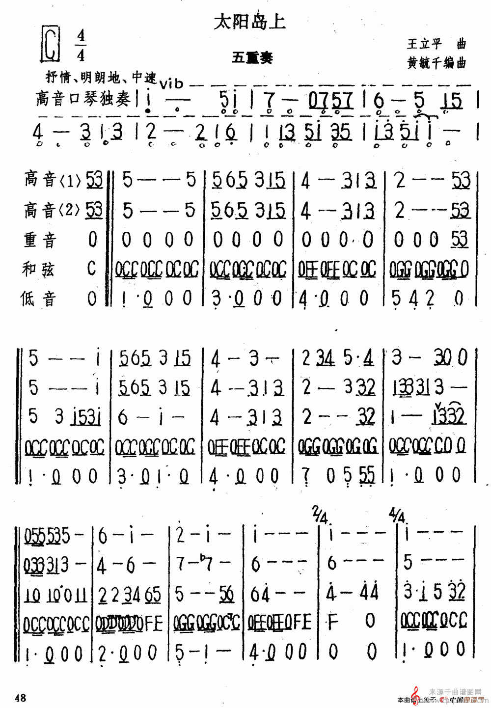 曲谱图网为您提供太阳岛上(口琴曲独奏演奏简谱)找谱子,就上曲谱图网。