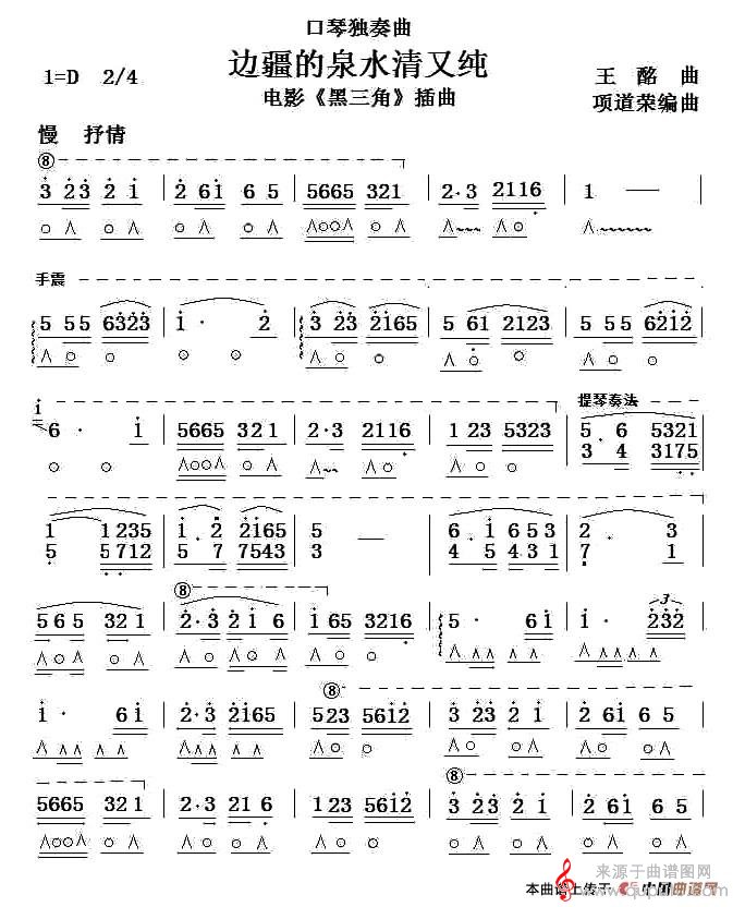 曲谱图网为您提供边疆的泉水清又纯(口琴独奏演奏曲谱)找谱子,就上曲谱图网。