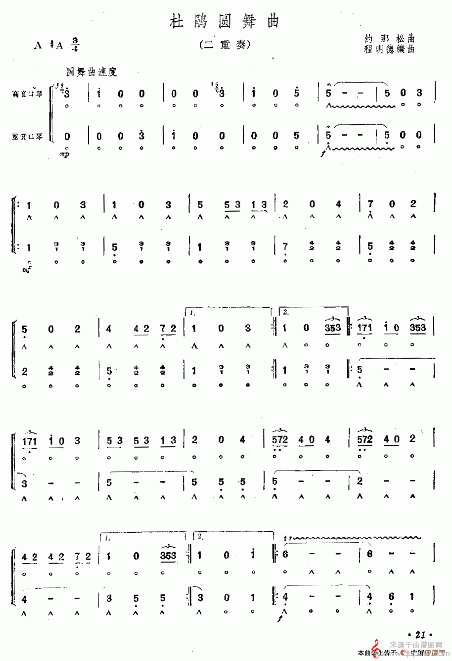 杜鹃圆舞曲(口琴曲二重奏独奏简谱)