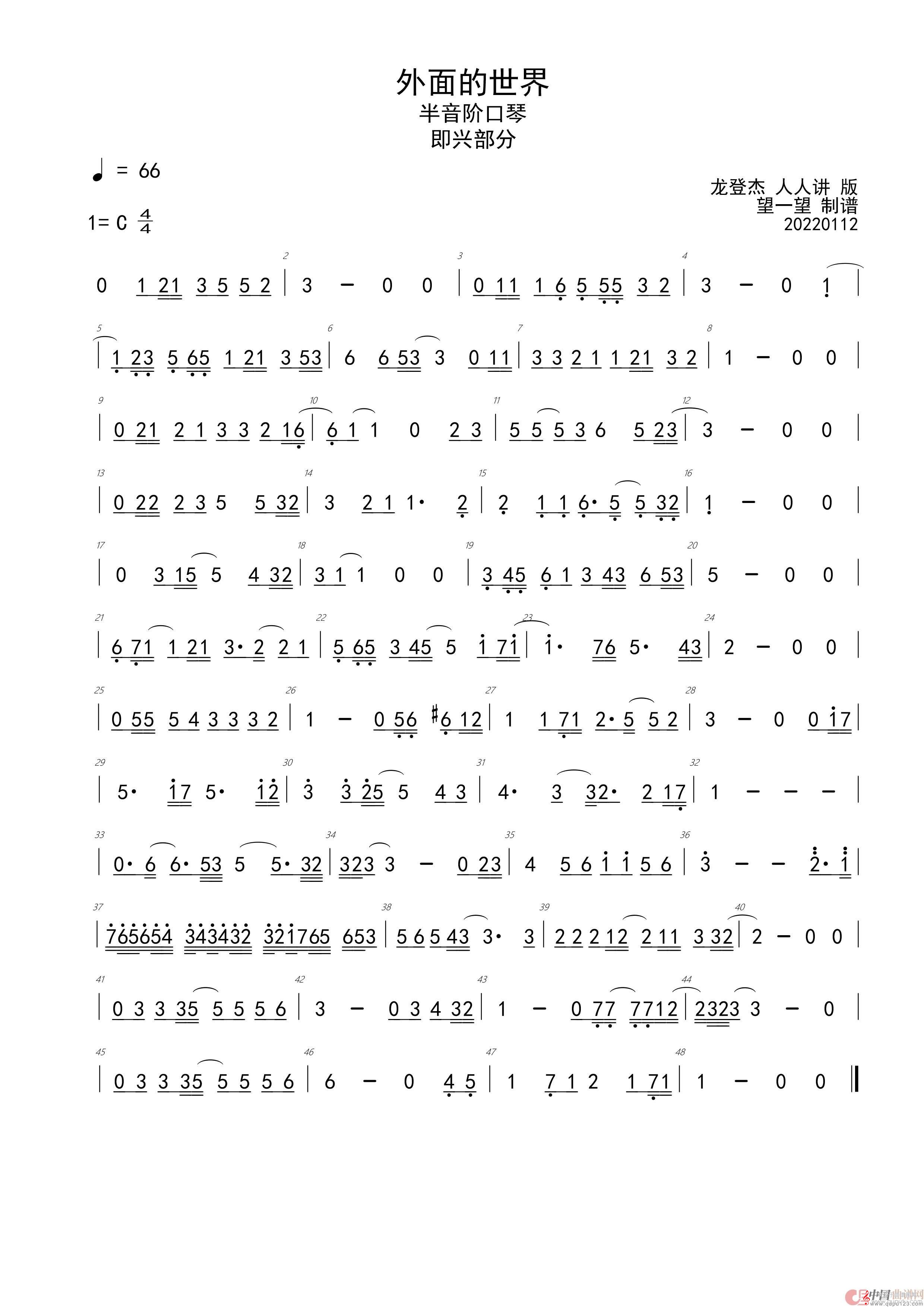 曲谱图网为您提供外面的世界(半音阶口琴独奏曲简谱带即兴部分)找谱子,就上曲谱图网。